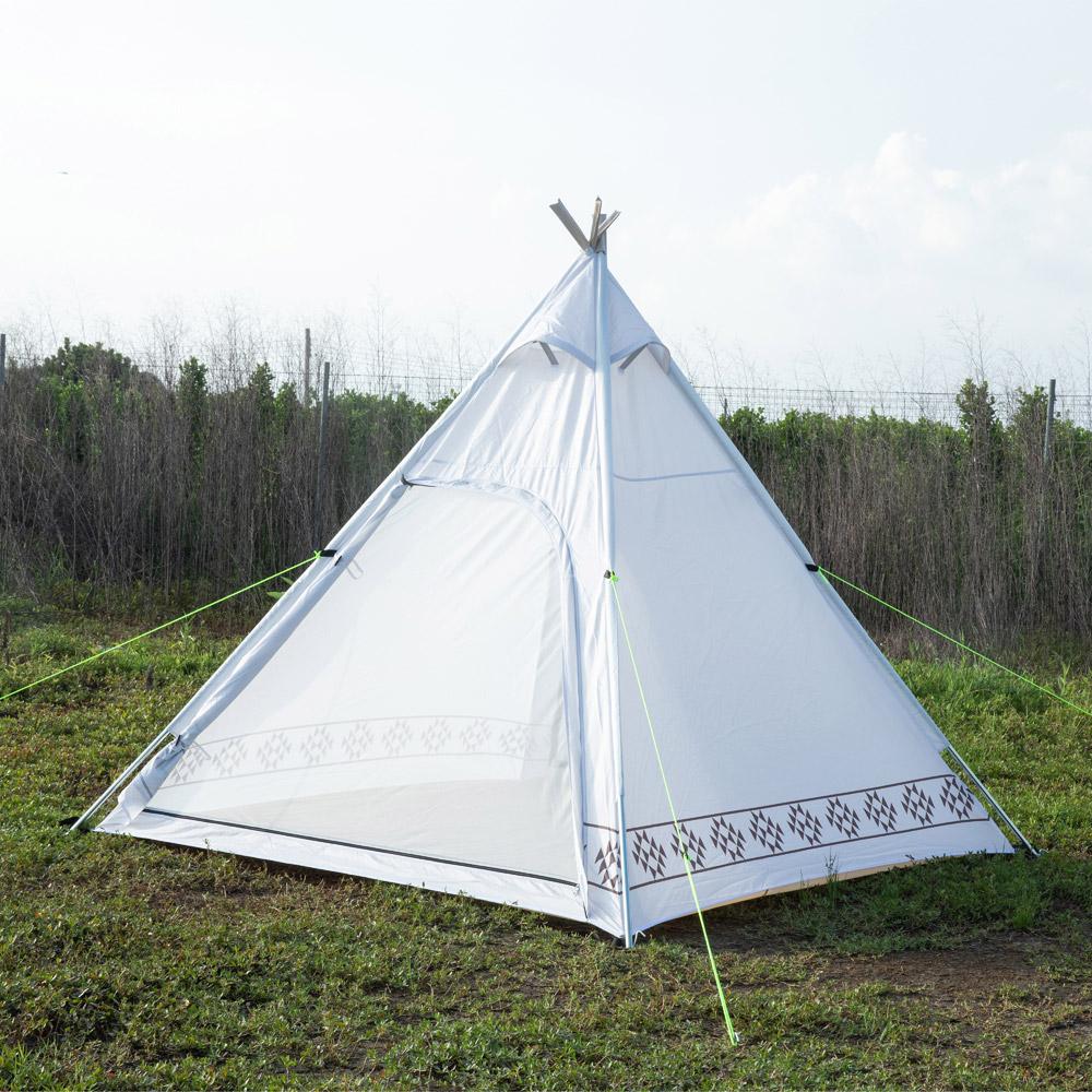 خيمة نزل هرمية من DPT، مصنوعة من قماش أكسفورد مع شبك، توفر بيئة مريحة ومهوية مثالية للتخييم والرحلات الخارجية.