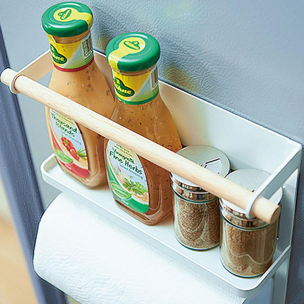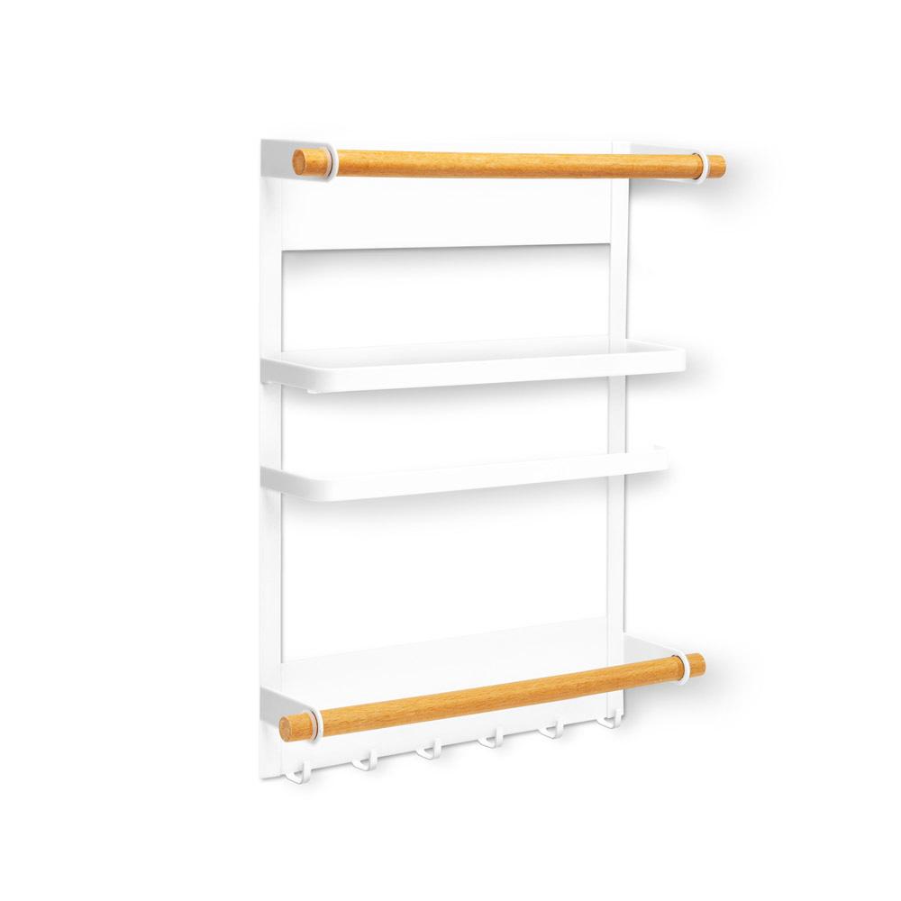رف تخزين مغناطيسي من السنيدي بتصميم عصري من الحديد المطلي، يثبت مباشرة على الثلاجة أو أي سطح معدني بسهولة. مثالي لتنظيم أدوات المطبخ والتوابل وغيرها من المستلزمات ليمنحك مطبخًا مرتبًا وواسعًا دون أي فوضى أو تثقيب للجدران.