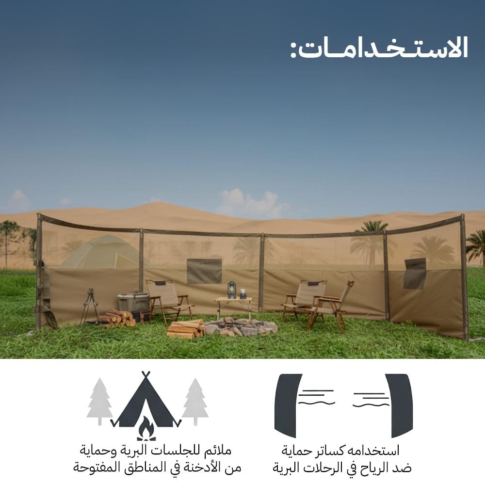 • ساتر رياح: يعمل كحاجز ضد الرياح في الجلسات البرية.