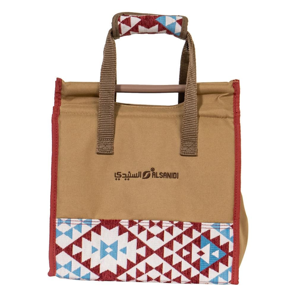 تمتع بتجربة ضيافة منظمة وأصيلة في كل نزهة أو طلعة برية مع شنطة الترامس المعزولة من السنيدي، المصممة بنقش تراثي عقيقي فاخر لتجمع بين الجمال والعملية في آن واحد.
