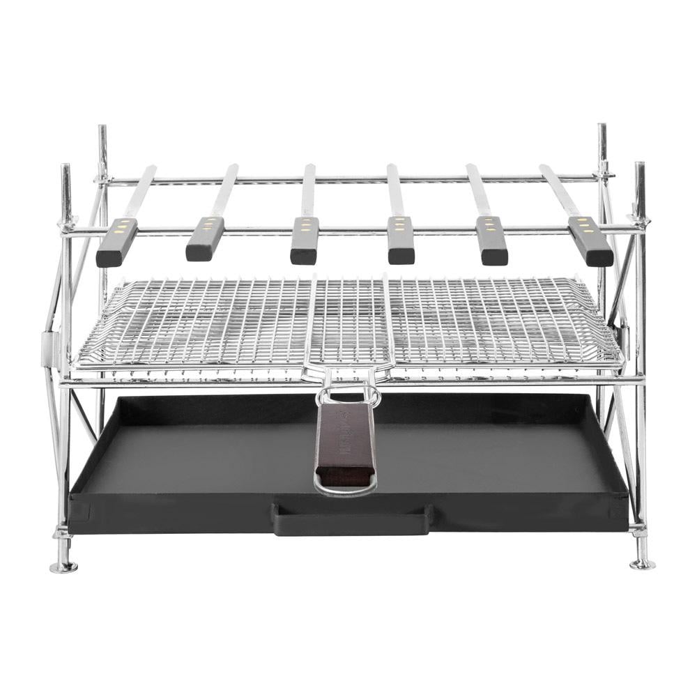 شواء متين وآمن: مصنوع من معدن معالج حراريًا لضمان قوة التحمل والاستخدام الآمن.