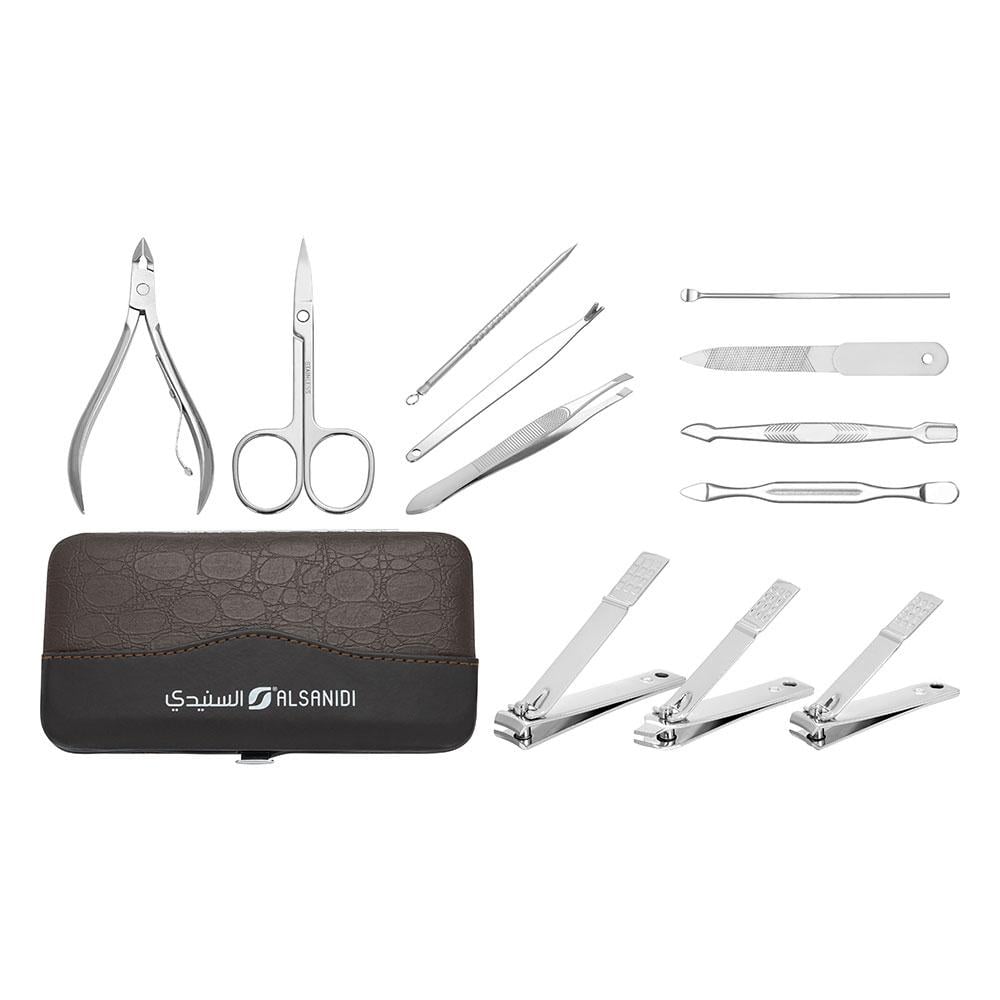 طقم العناية الشخصية بالأظافر من السنيدي، تصميم فاخر وأدوات متينة مصنوعة من فولاذ مقاوم للصدأ، يأتي مع جراب بني غامق أنيق مناسب للاستخدام اليومي والسفر، ليمنحك تجربة متكاملة للعناية بجمالك.