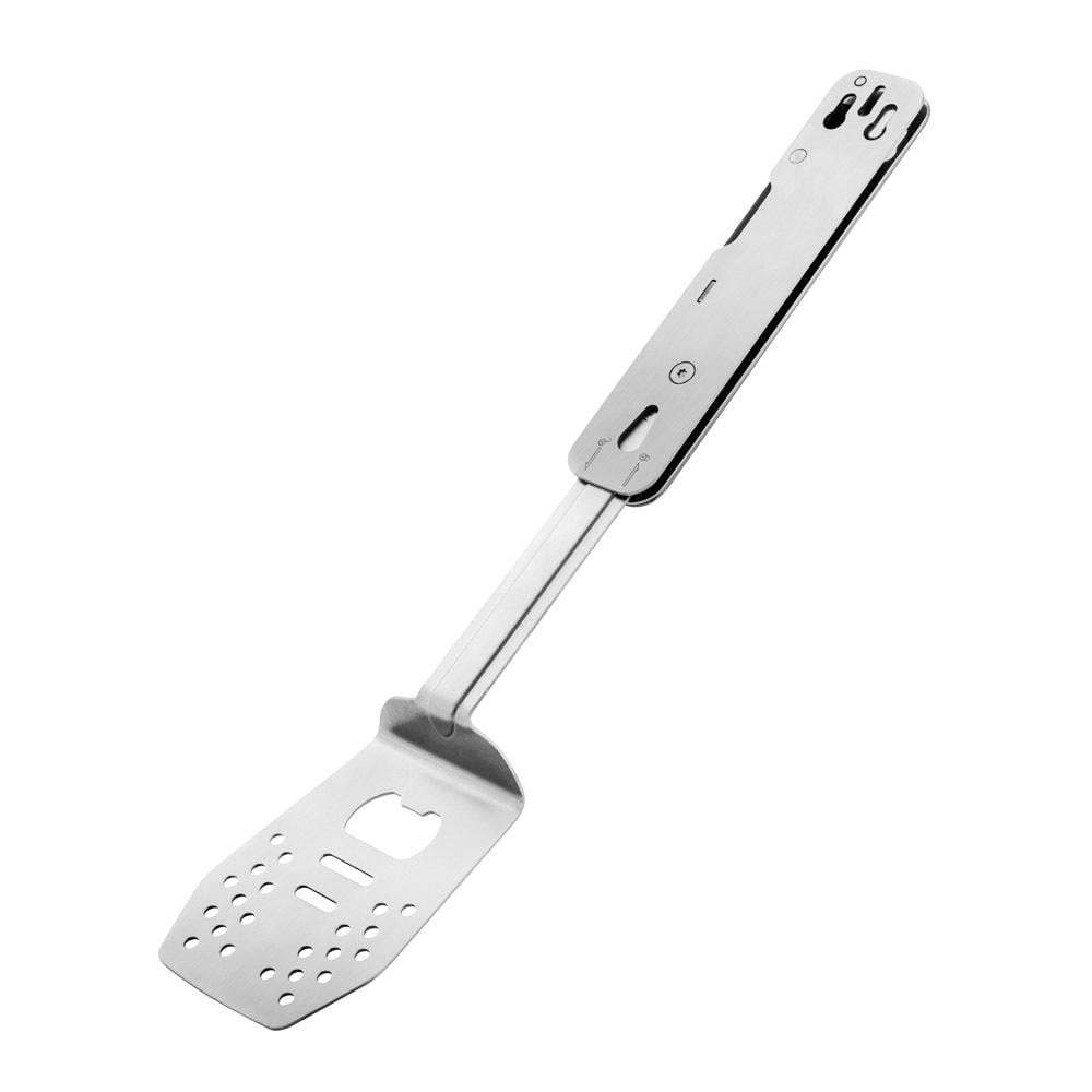 1. تصميم مدمج فريد: يتضمن الأداة (ملعقة، شوكة، ملفاط، وفتاحة زجاجات)؛ كل ما تحتاجه للشواء في أداة واحدة!