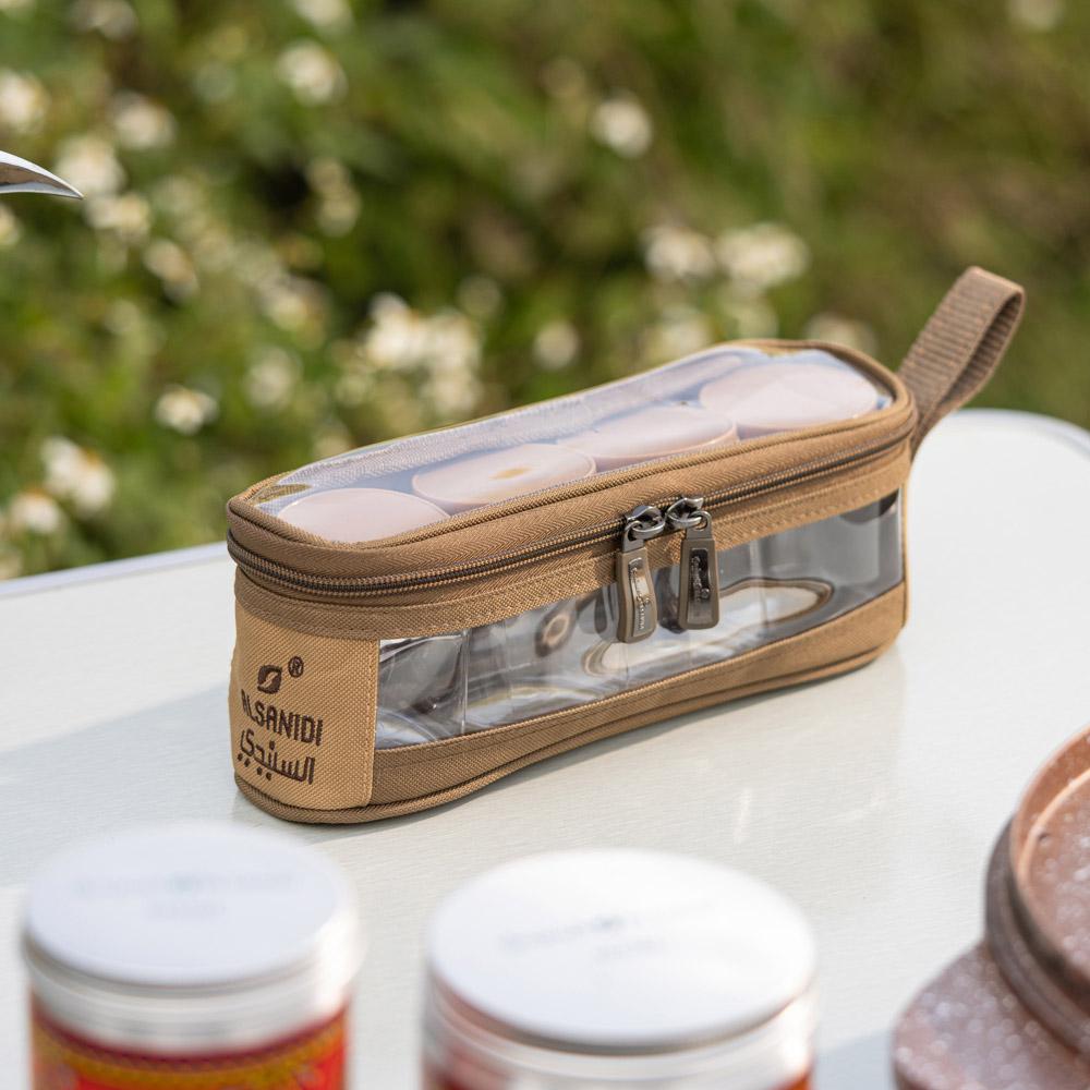 Enjoy storing and organizing all your items safely with this spice box bag complete with two clear sides and a lid!