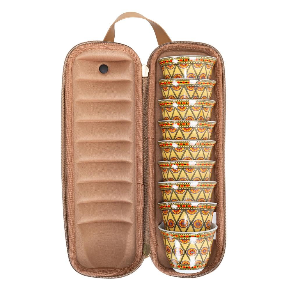 تصميم محمول: تتميز بتصميم خفيف الوزن وسهل الحمل، مع غلاف صلب يحمي الفناجين من أي تلف.