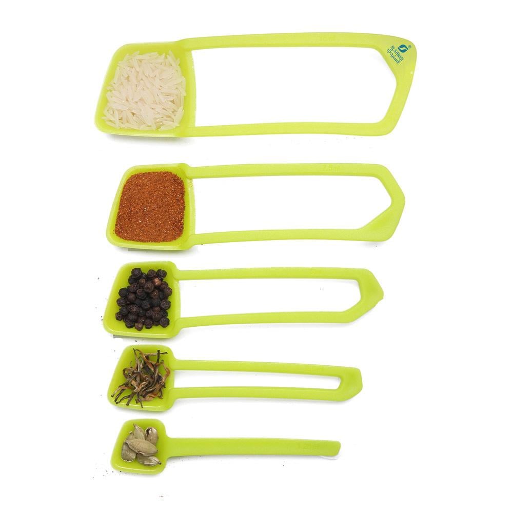📏 المقاسات: 5 مقاسات مختلفة بوحدتين (مل / ملعقة صغيرة وكبيرة)