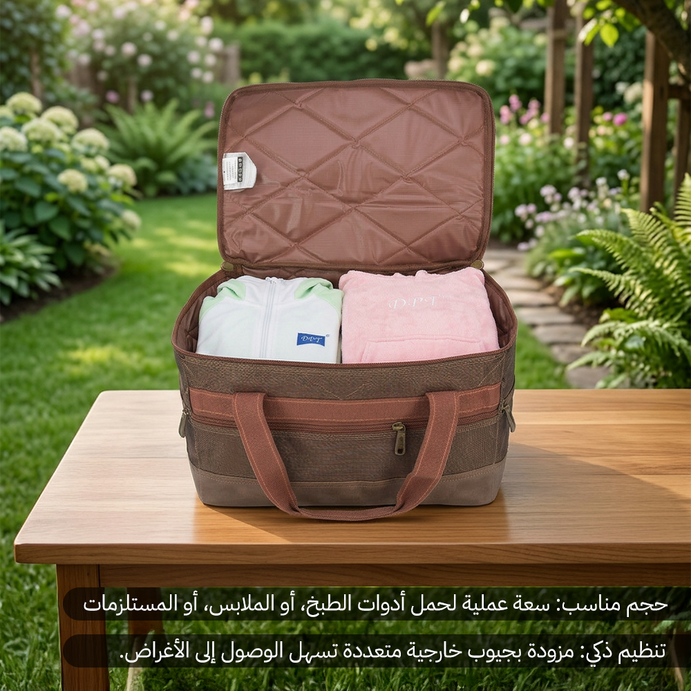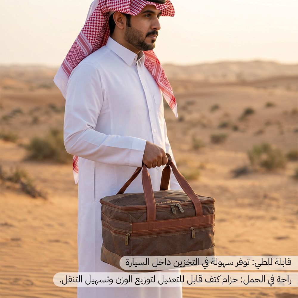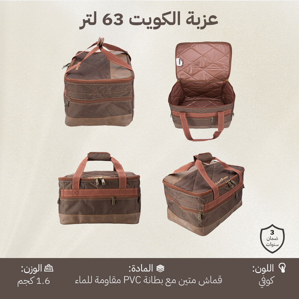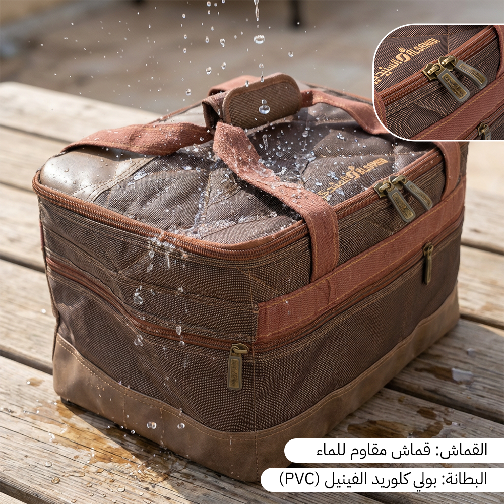 شنطة عزبة الكويت الكبيرة بطانة PVC وقماش كوفي من السنيدي – خيارك الأمثل لتنظيم معدات الرحلات بسعة كبيرة وجودة عالية