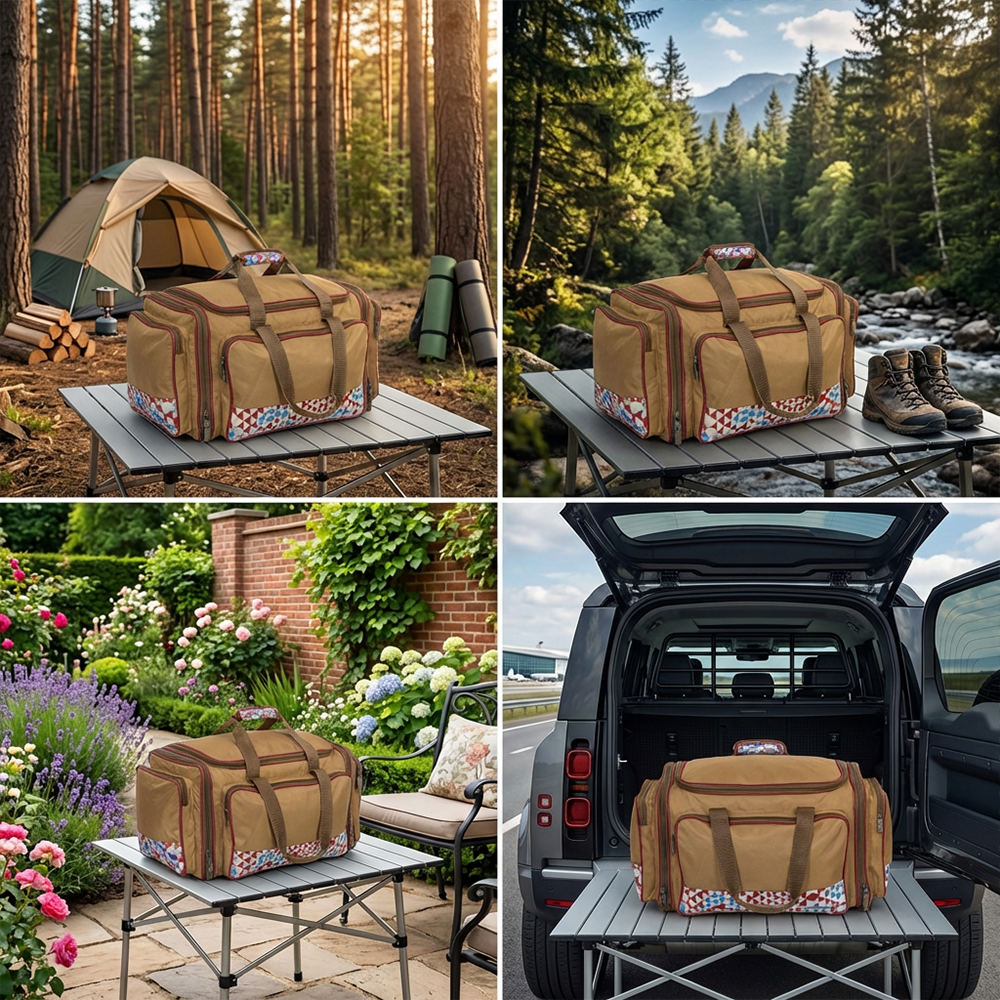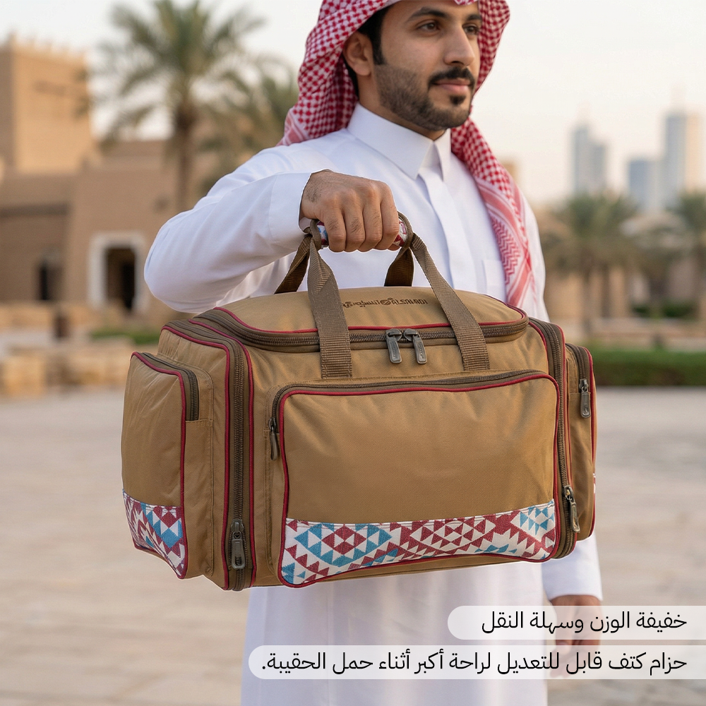 شنطة عزبة المستوي للرحلات من السنيدي هي الخيار المثالي للرحلات البرية والسفر، بفضل تصميمها القابل للطي والمواد المتينة التي توفر لك الراحة والمرونة في تنظيم وحمل الأغراض.