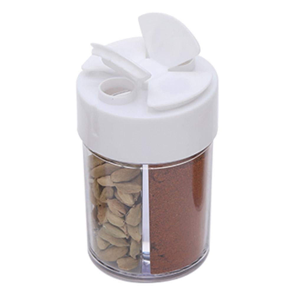 استمتع بتخزين توابلك بطريقة عملية ومنظمة مع علبة بهارات بلاستيك اسطوانى شفاف مقسمة 4 خانات بغطاء أبيض!