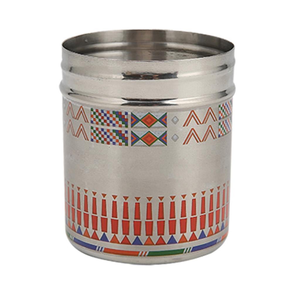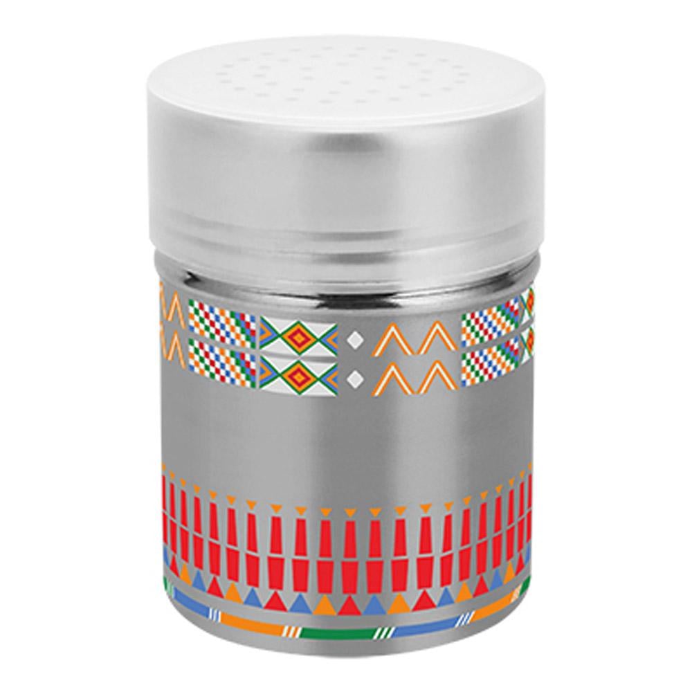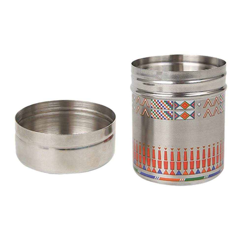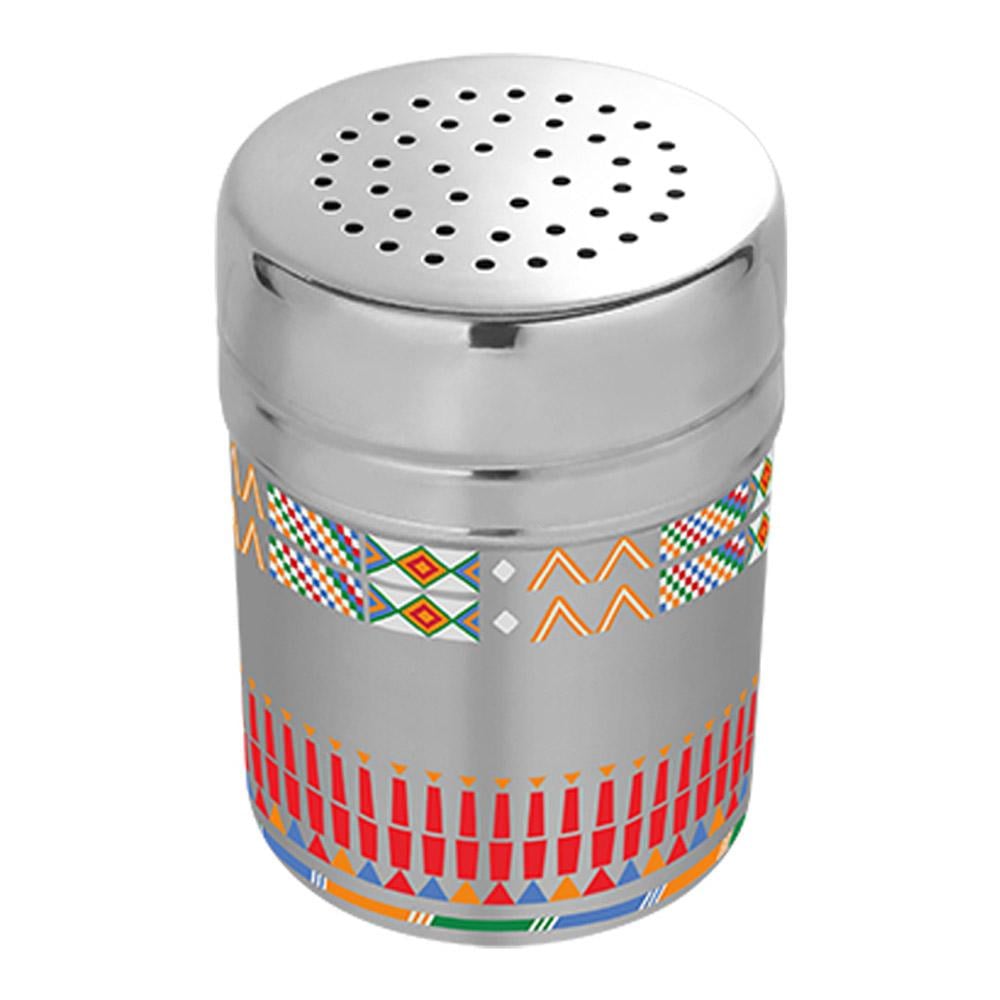 حافظة بهارات صاح اسطوانية مخرمة نقش القط العسيري مصممة من مادة ستانلس ستيل #304 عالي الجودة. مع تصميم تقليدي فني، توفر لك تخزينًا آمنًا وأنيقًا للبهارات.