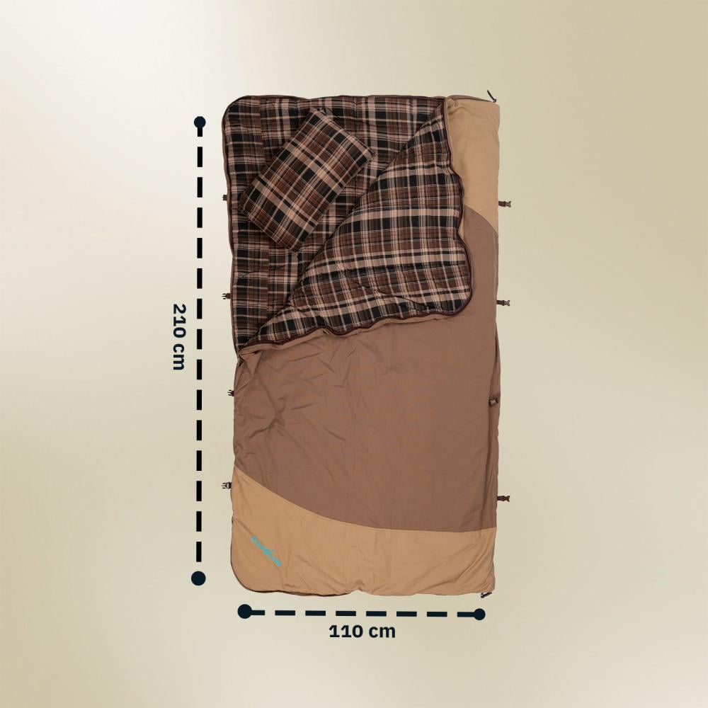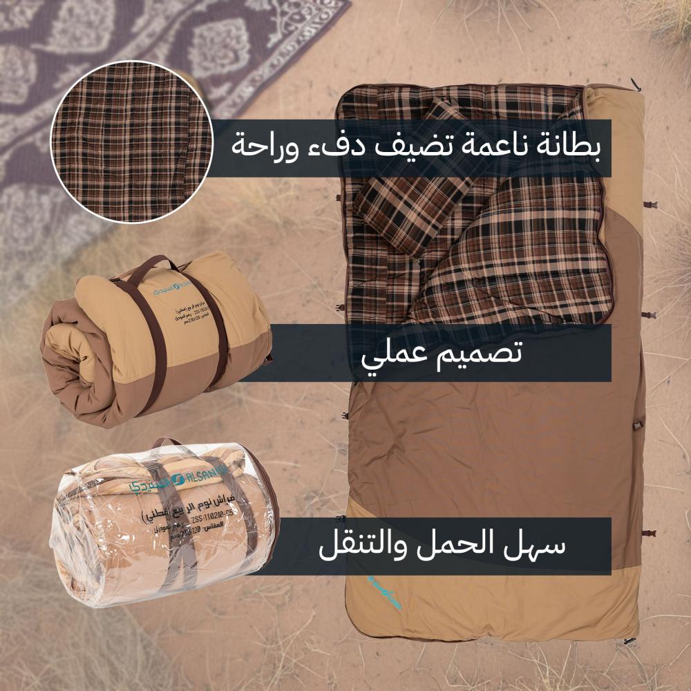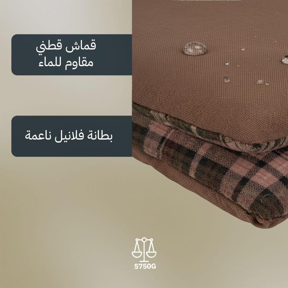 فراش عملي ومريح مصنوع من قماش قطني متين مقاوم للماء والتمزق، مع بطانة فلانيل ناعمة بنقشة مربعات، يوفّر دفء وراحة أثناء الرحلات والتخييم في مختلف الفصول.