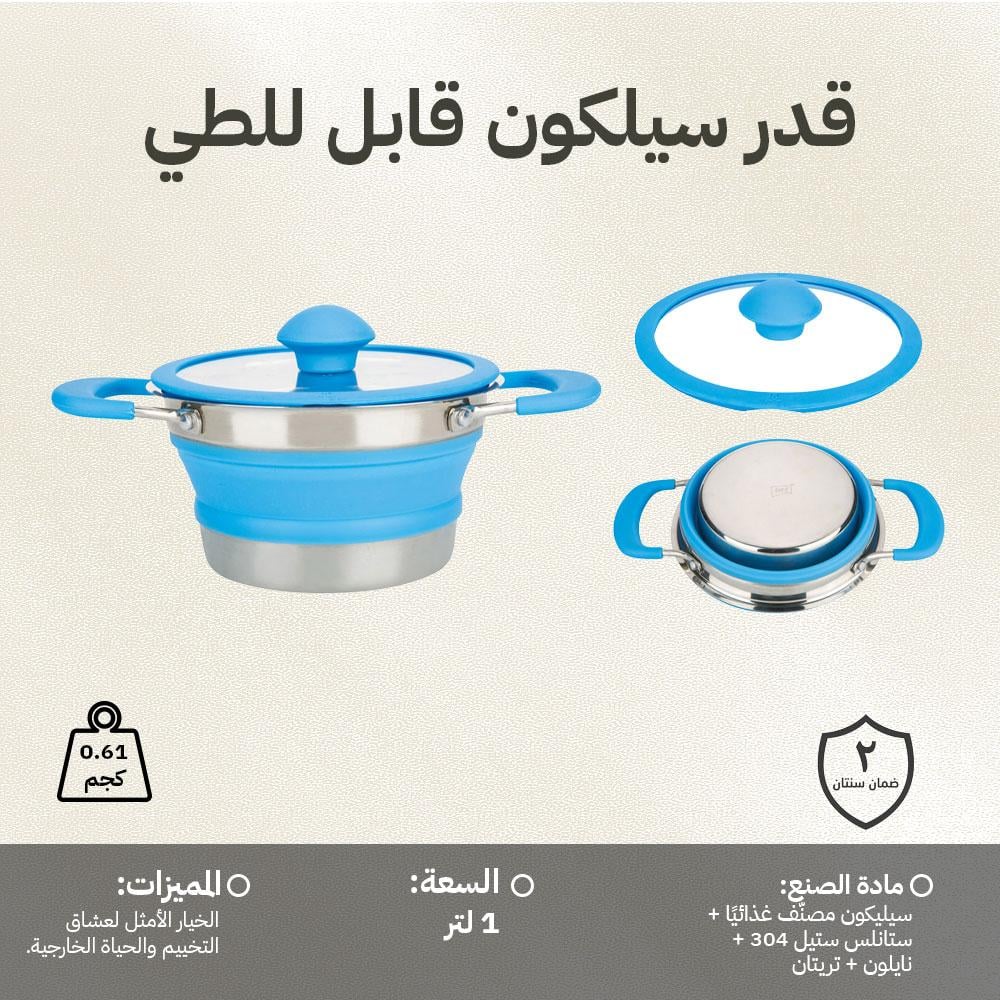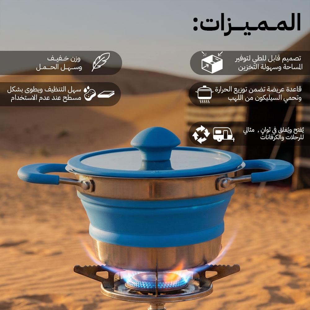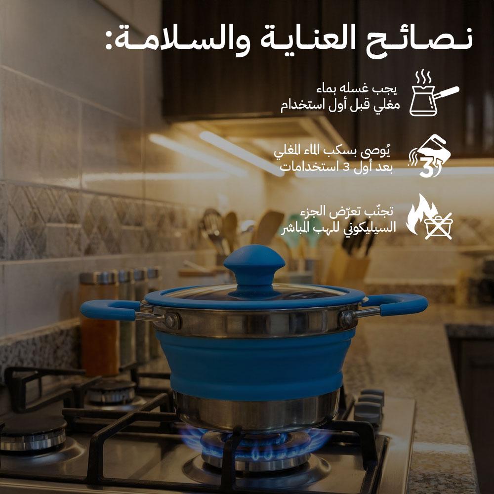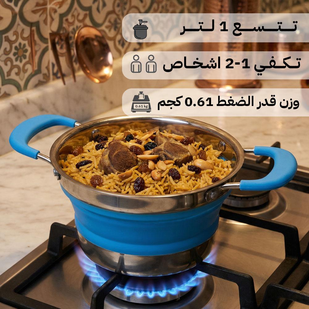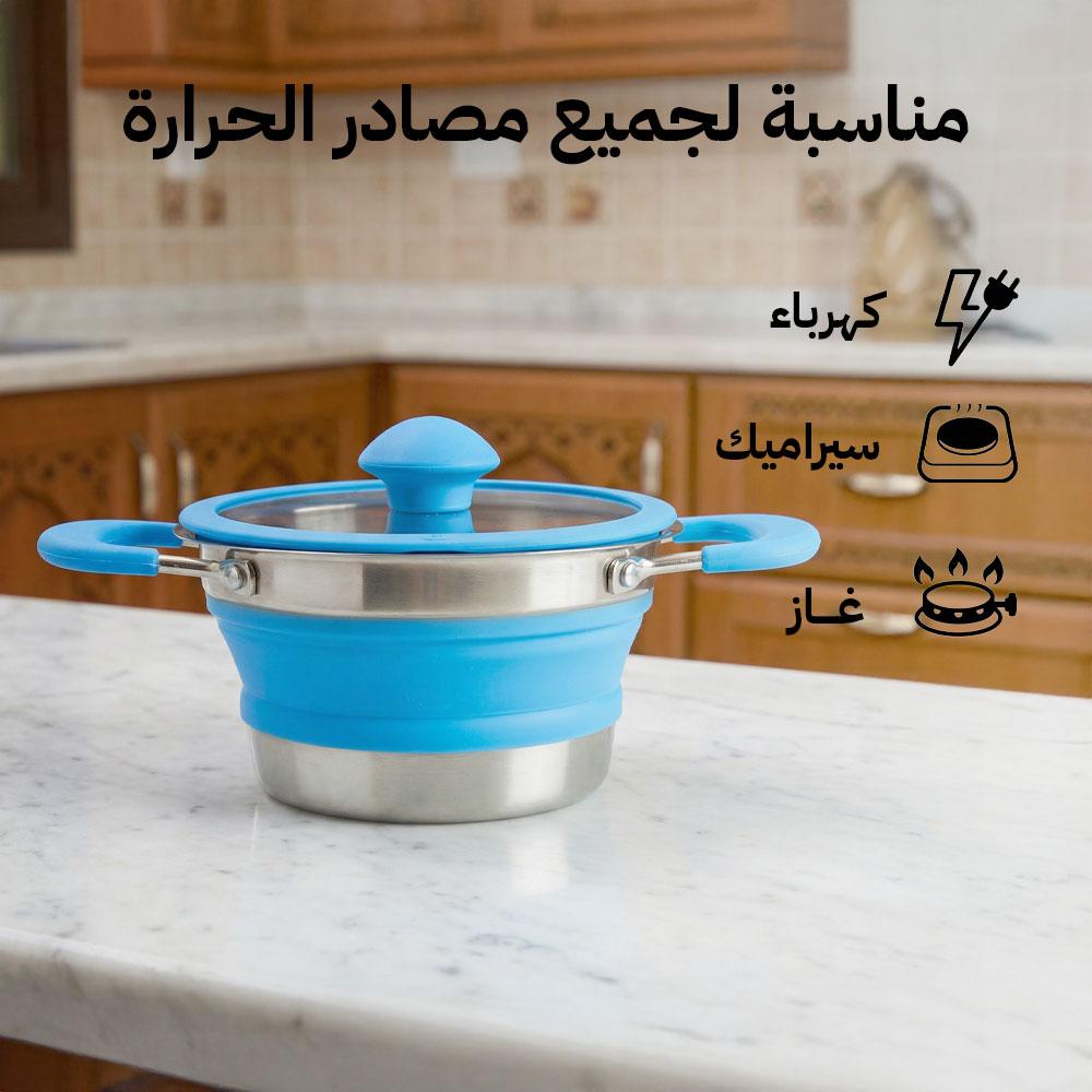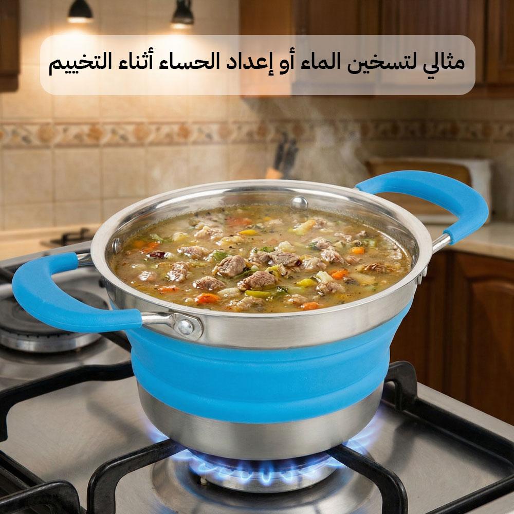 قدر طبخ سيليكوني قابل للطي بقاعدة ستانلس ستيل – عملي للرحلات والتنقل