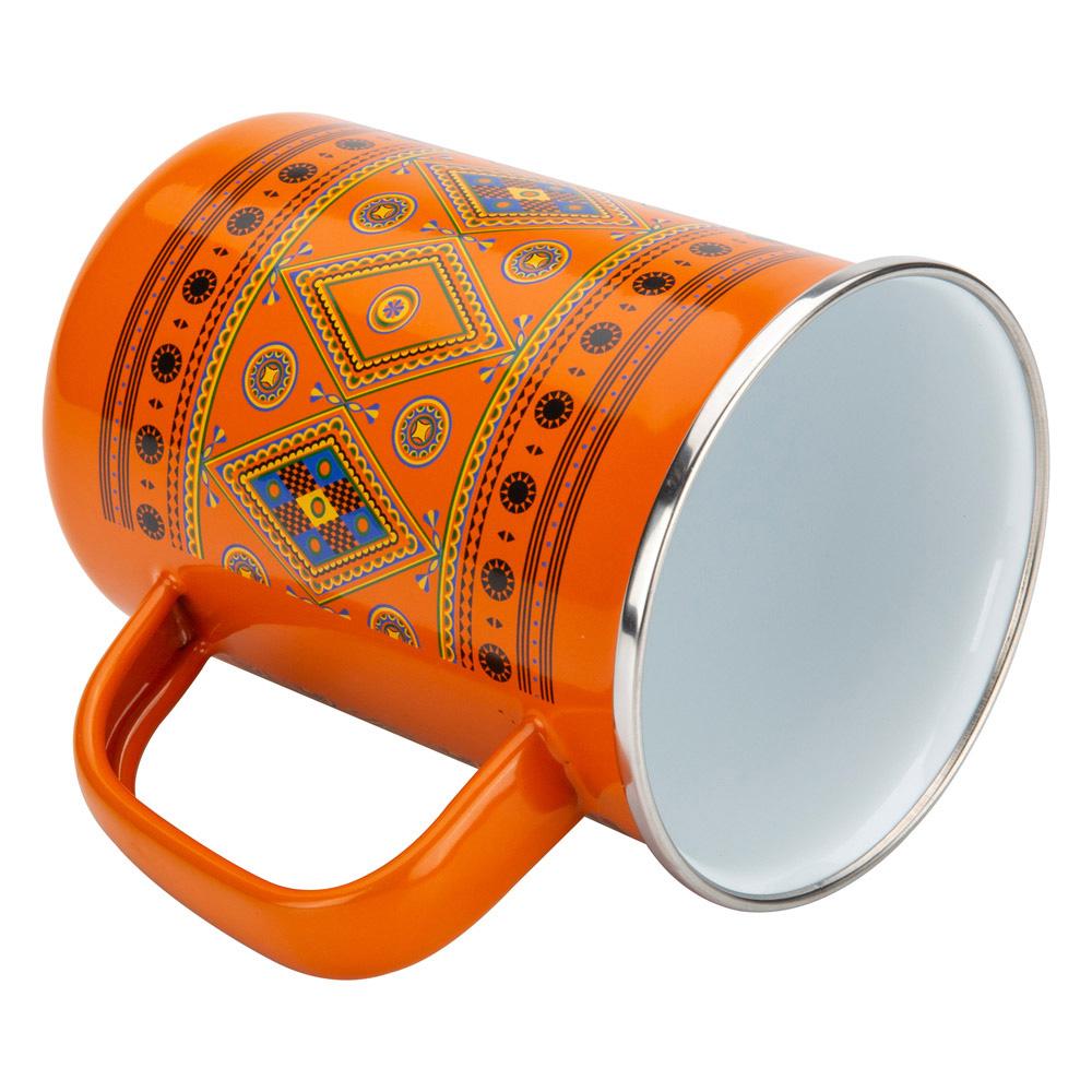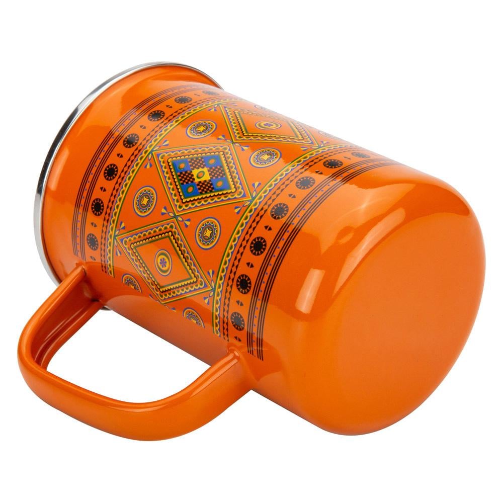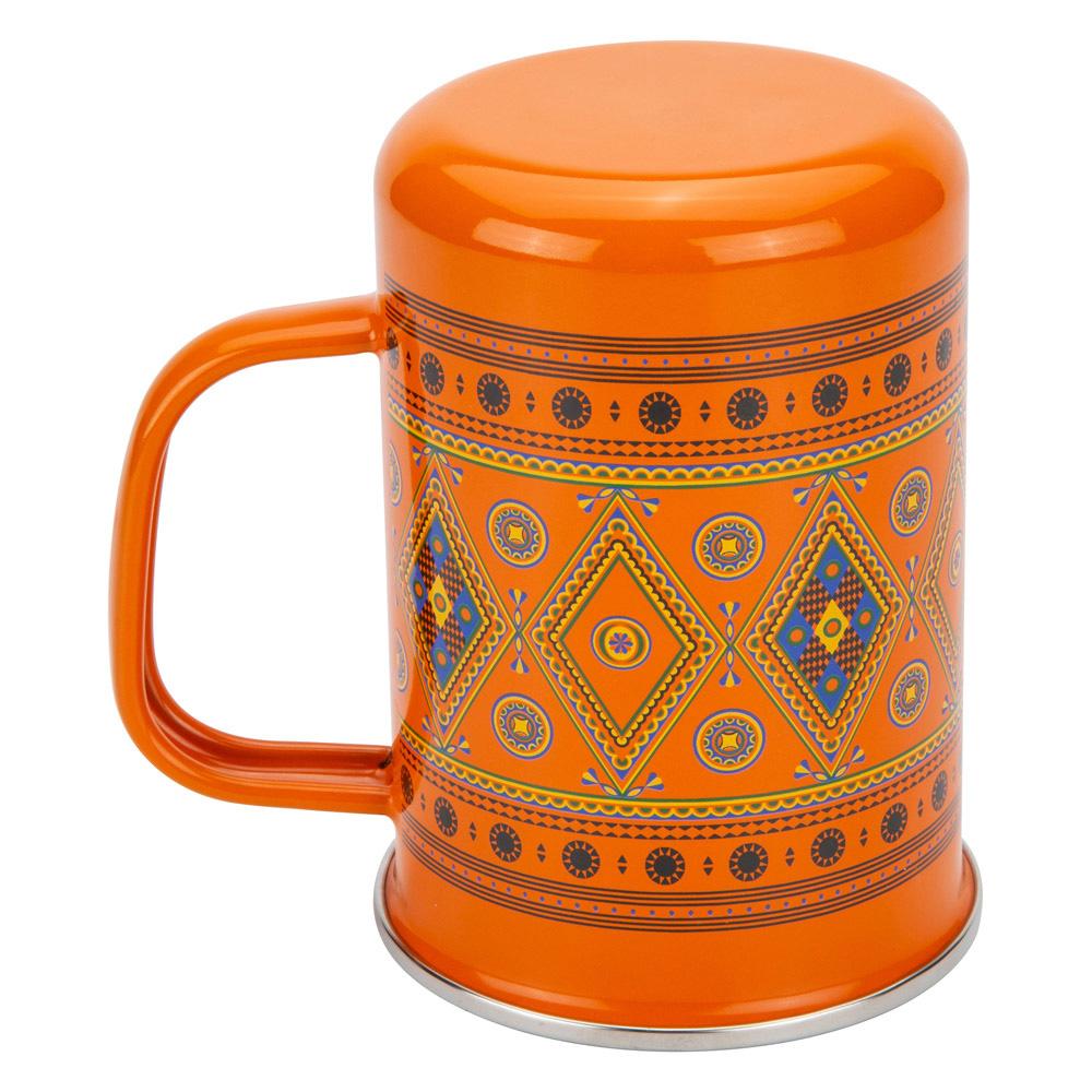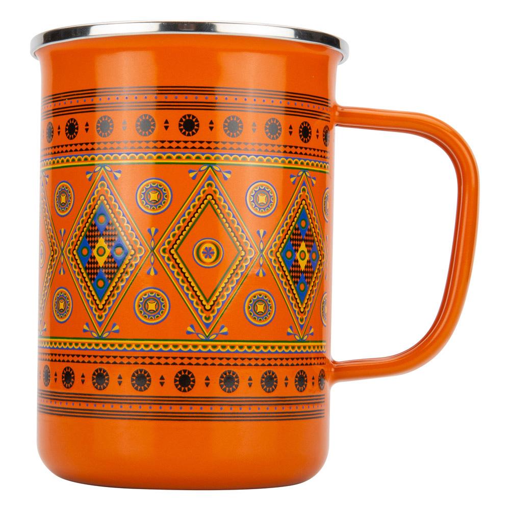 كوب شينكو بنقش نجدي برتقالي جذاب، مصنوع من المينا عالي الجودة، يوفر لك تجربة شرب مريحة وأنيقة مع تصميم عملي لسهولة الحمل والاستخدام.