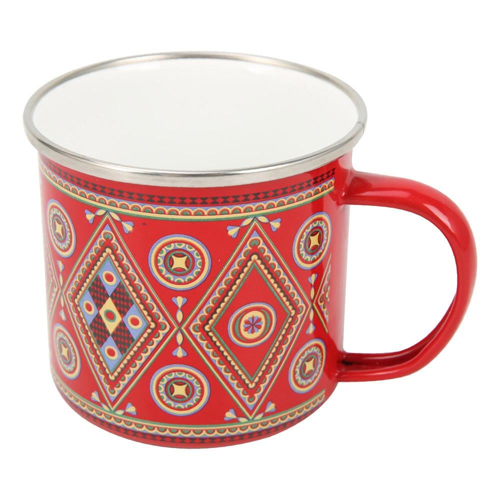 كوب شينكو الرائع بنقشة نجدي على معدن ومينا مزخرف، مع حافة من الاستانلس ستيل توفر راحة عند الشرب وتصميم عملي يناسب جميع الأوقات والاستخدامات.