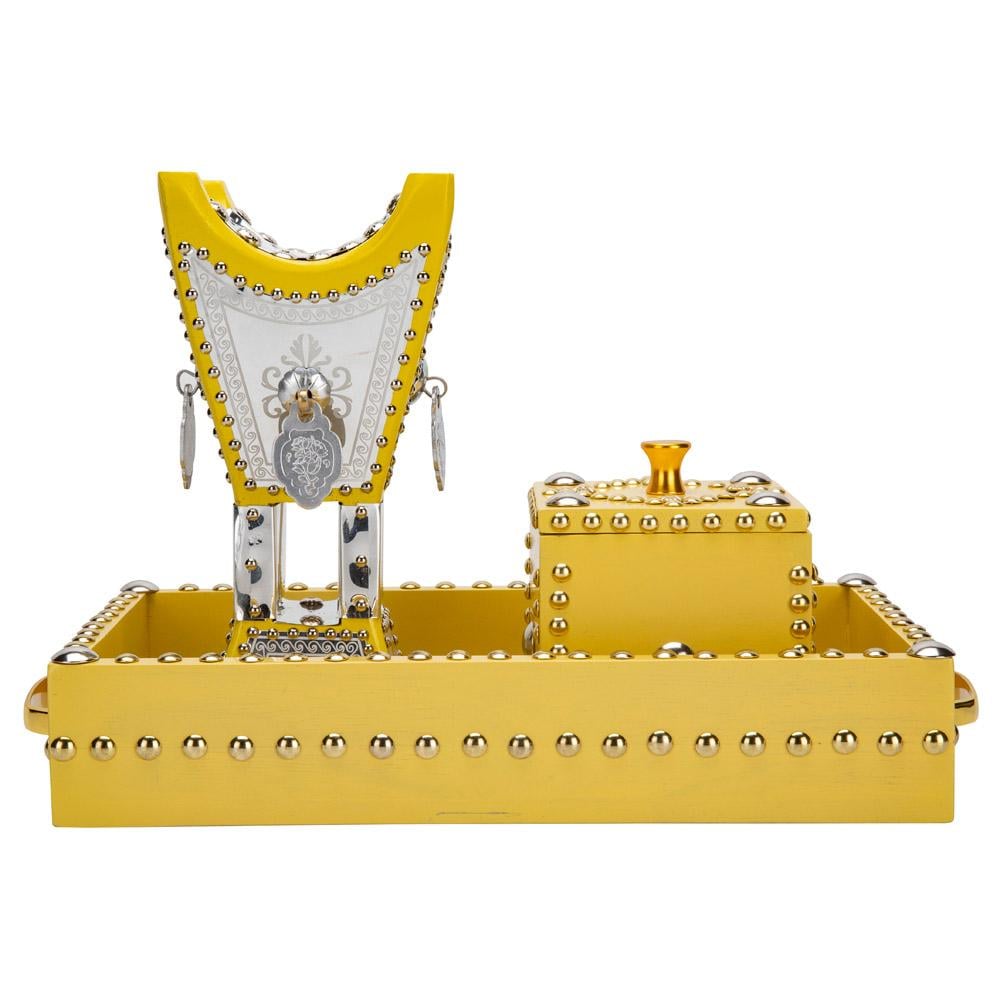 مجموعة متكاملة تحتوي على المبخرة، الطوفرية، وصندوق تخزين مزينة بتصميم تراثي فاخر ومتين.