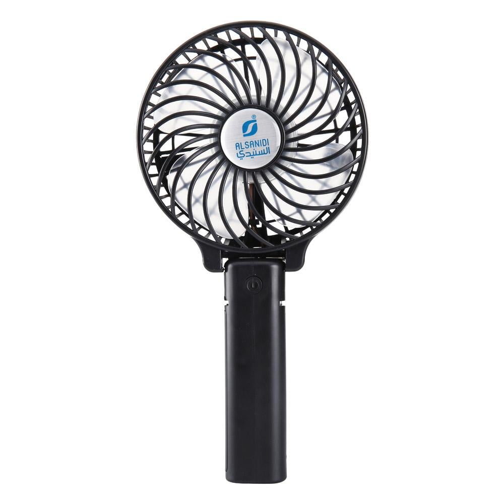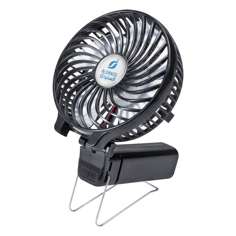 مروحة برأس متحركة 4 إنش تعمل عبر USB موديل SNTR-0257، لون أسود بحجم مدمج وأداء هادئ