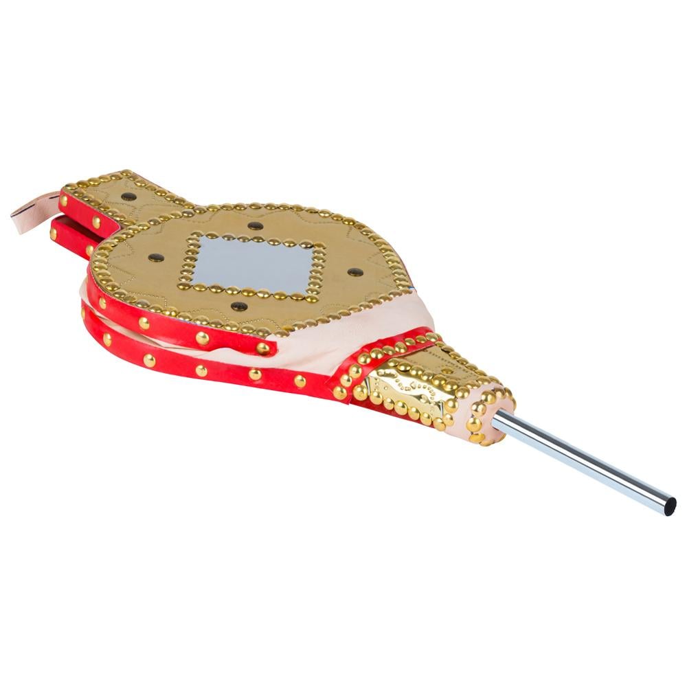 تصميم مميز وجميل: يتكون من طبقتين من الخشب على شكل فكين مع أنبوب مخرج للهواء، ويتميز بزخارف دقيقة ومرايا ومسامير نحاسية تضفي عليه لمسة فنية رائعة.