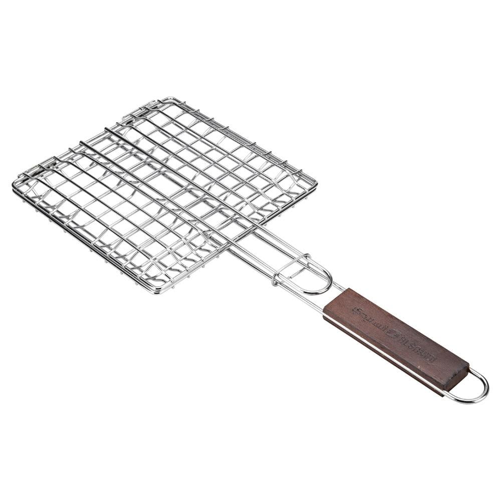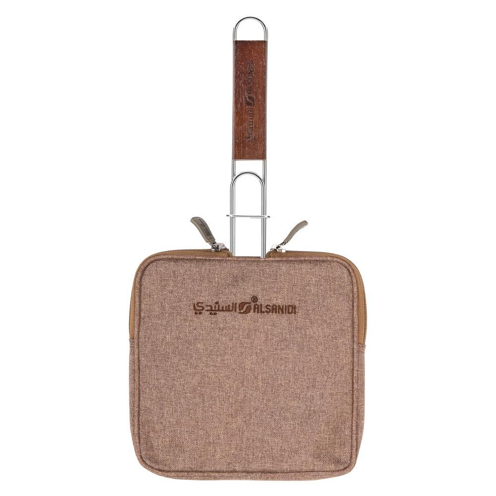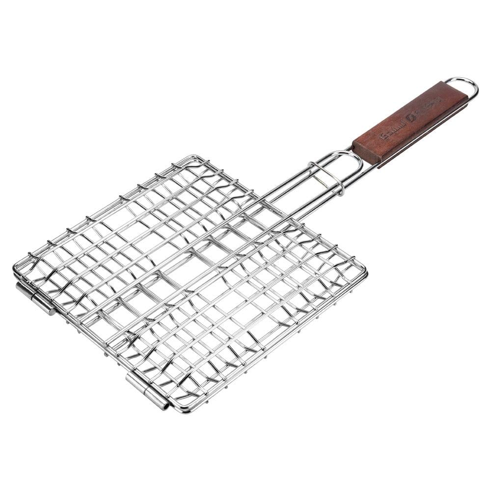 شبك شوي (الموديل SNBQ-0243S-D). مادة التصنيع: معدن معالج حراريًا. الحجم: 20 × 20 سم. الوزن: 0.6 كجم. يتميز بمادة تصنيع قوية ومتينة، ومرفق بحقيبة ليسهل تخزينها، ويستخدم بشكل واسع في الشواء.