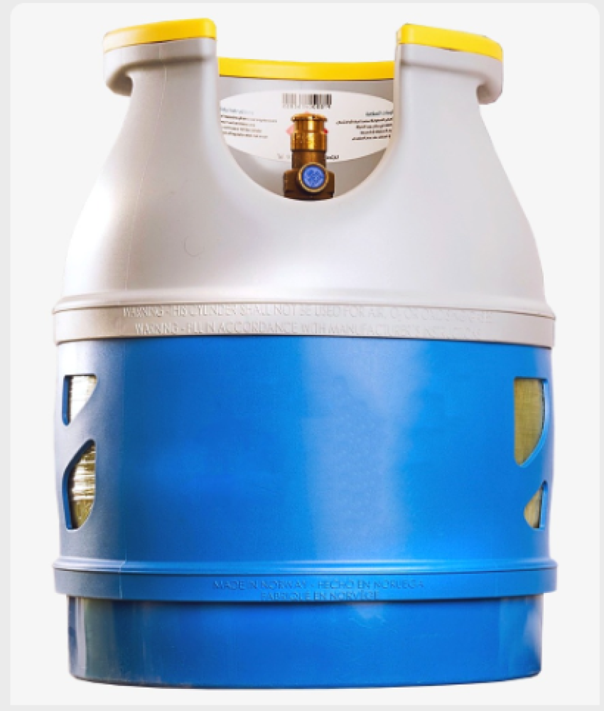 اسطوانة غاز فيبر 5 كيلو فارغة، خفيفة الوزن، وزنها بعد التعبئة 8 كجم