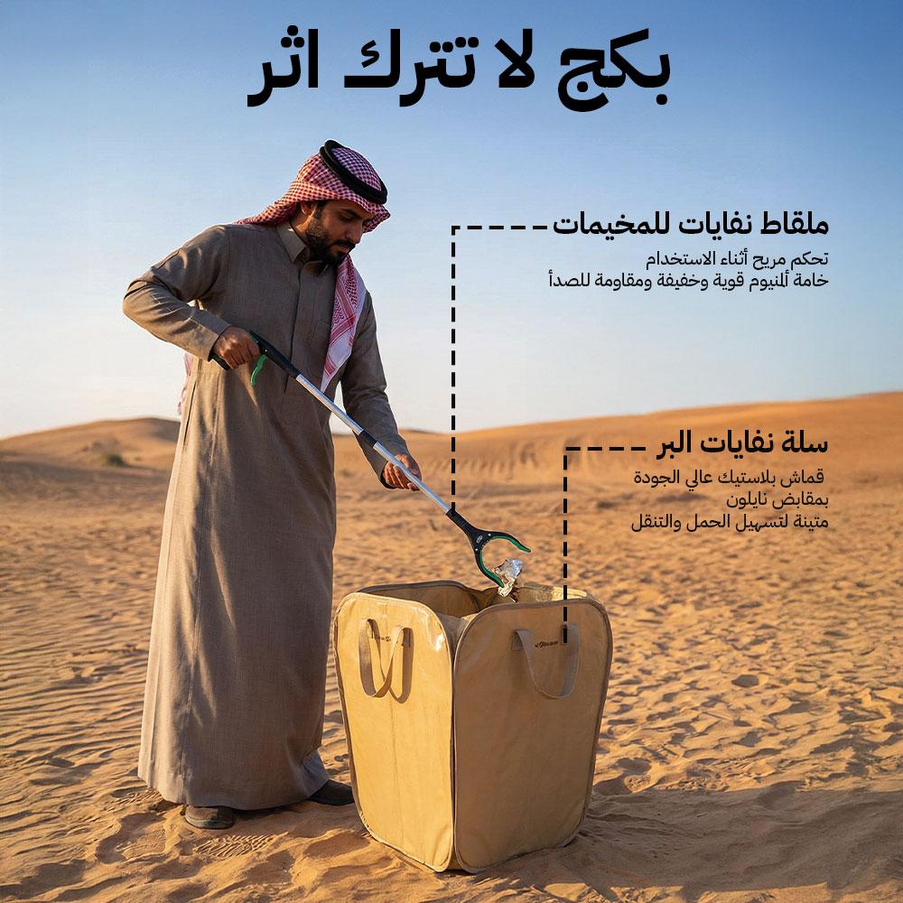 بكج لا تترك اثر، سلة نفايات 63×63×63سم، ملقاط نفايات 83 سم، ضمان سنتان