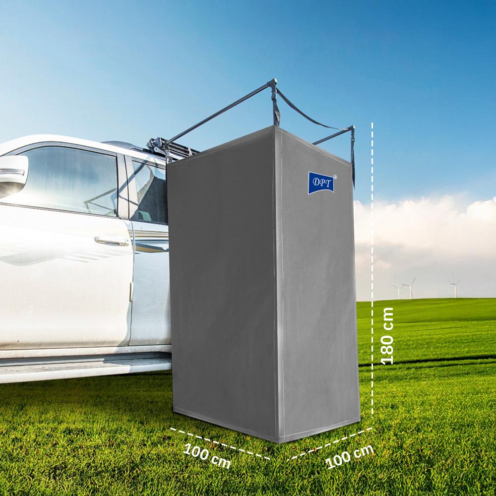 خيمة حمام جانبية للسيارة تجمع بين المتانة وسهولة الاستخدام، مصممة لتوفير خصوصية وراحة أثناء الرحلات والرحلات البرية، مع تصميم عملي يسمح بتركيب سريع ومستقر على جانب السيارة