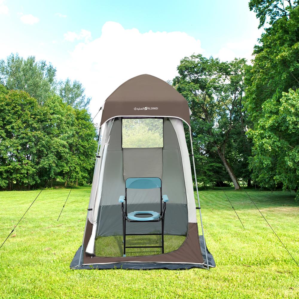حمام متنقل للرحلات من السنيدي، مصنوع من قماش أكسفورد 210D مقاوم للماء مع إطار من الفولاذ المقاوم للصدأ، يجمع بين المتانة والتصميم العملي ليمنحك راحة وخصوصية مثالية في الهواء الطلق.