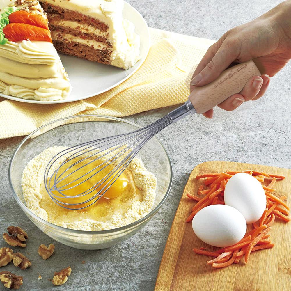 🥚 خفاقة بيض يدوية ستانلس ستيل بمقبض خشبي من السنيدي – خفة وتحكم طبيعي في كل خفقة! 🍳