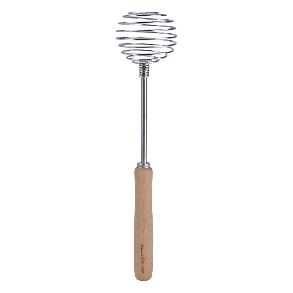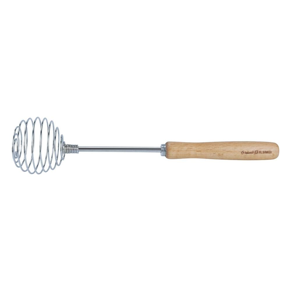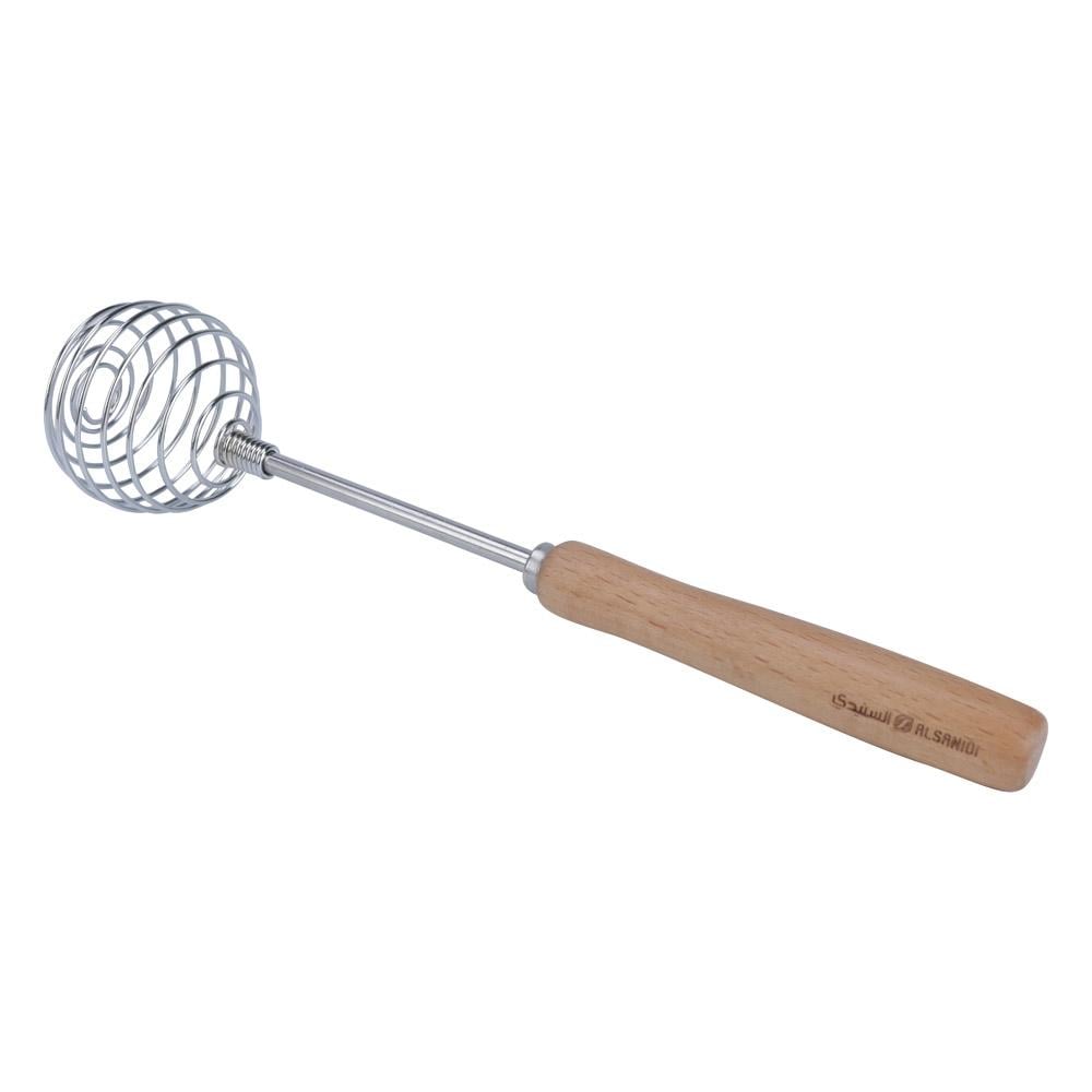 🥚 خفاقة بيض يدوية ستانلس ستيل بمقبض خشبي من السنيدي – لمسة طبيعية وأداء عالي في مطبخك! 🍳