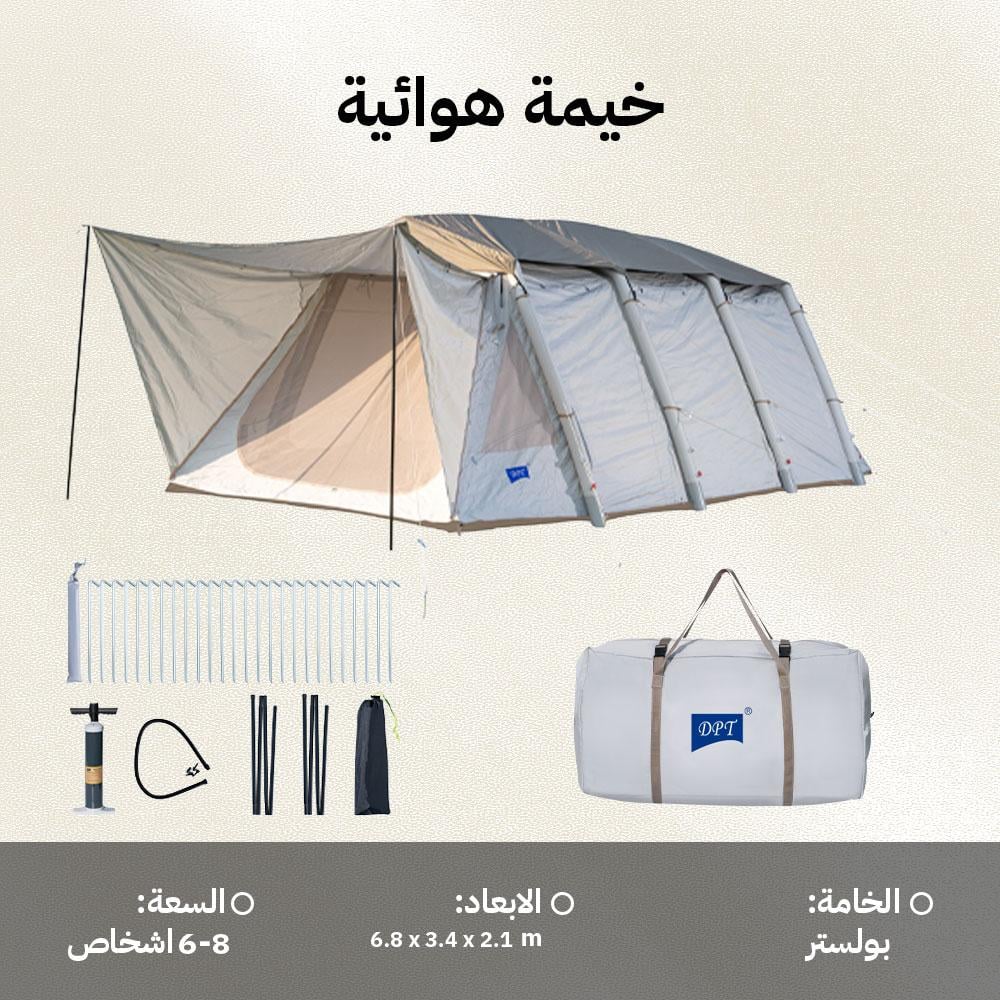 خيمة نفق دي بي تي بإطار هوائي من مادة TPU، مصنوعة من قماش أكسفورد بوليستر عالي الجودة مع طلاء مقاوم للماء، توفر مساحة واسعة واستقرارًا ممتازًا لعشاق التخييم والرحلات الخارجية.