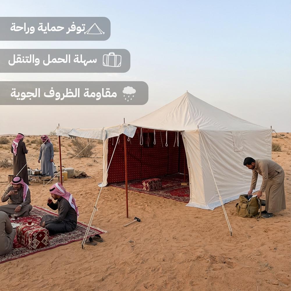 خيمة رحلات النزهة من السنيدي، خيمة قماش قطني أبيض باكستاني مبطنة، تقدم لك الراحة والمتانة بتصميم عملي يناسب التخييم والرحلات الخارجية.