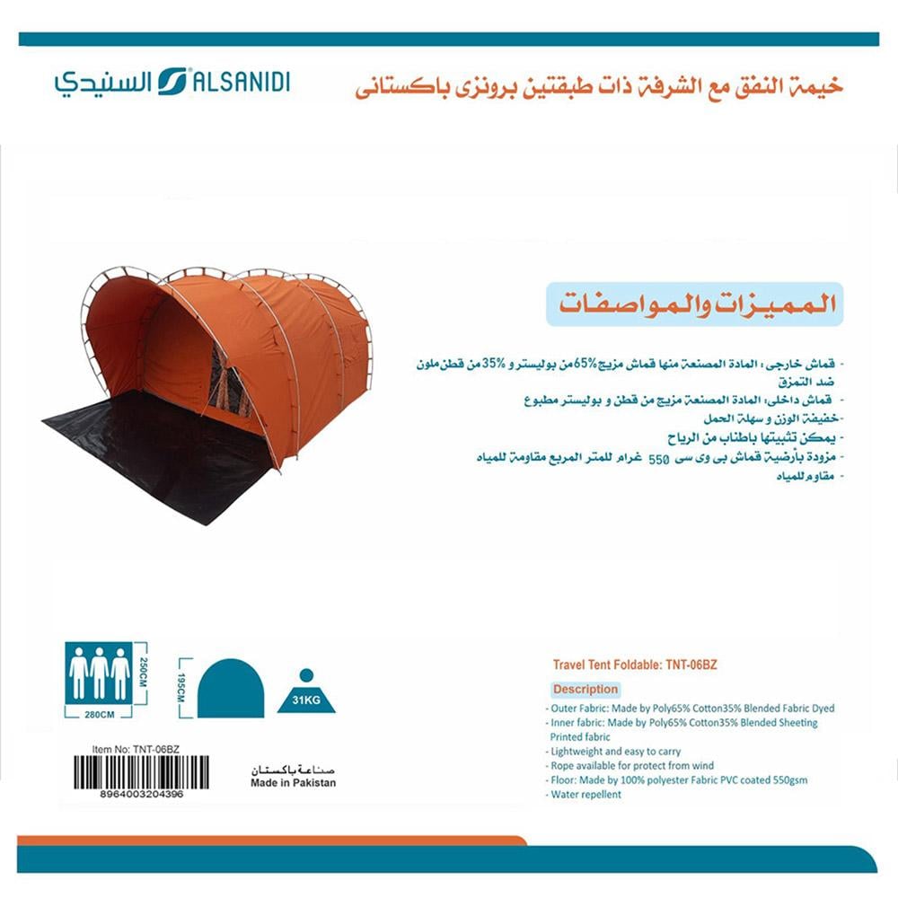 خيمة رحلات النفق القطنية برونزية اللون من باكستان، تجمع بين المتانة والتصميم العملي لتوفير مأوى مريح وعملي في الهواء الطلق.