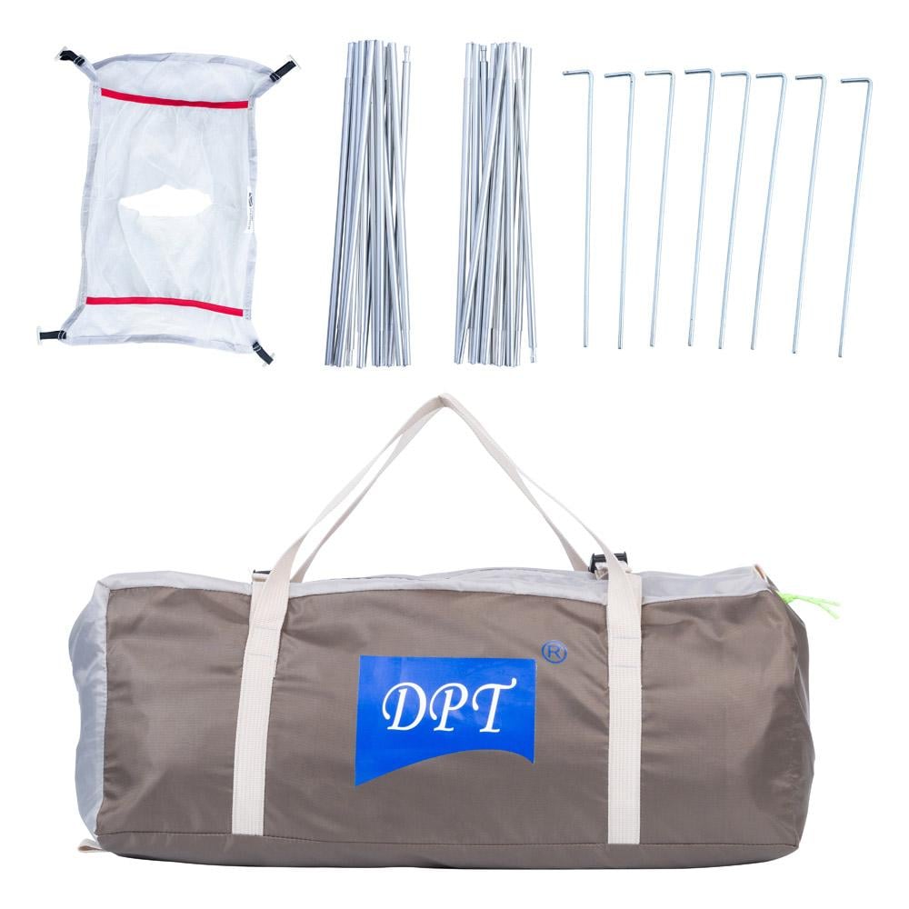 خيمة رحلات متنقلة من دي بي تي، مصنوعة من قماش بوليستر أبيض عالي الجودة، توفر راحة وحماية مثالية في رحلات التخييم والأنشطة الخارجية.