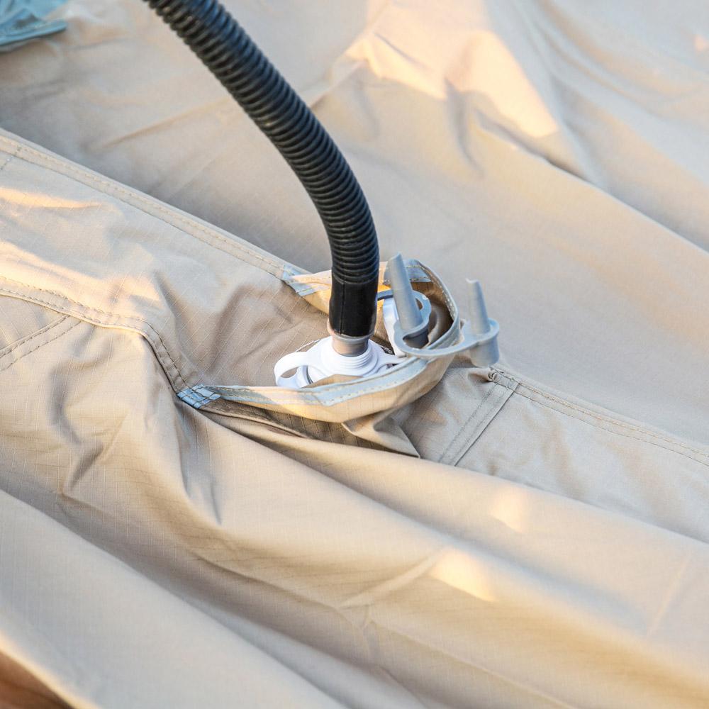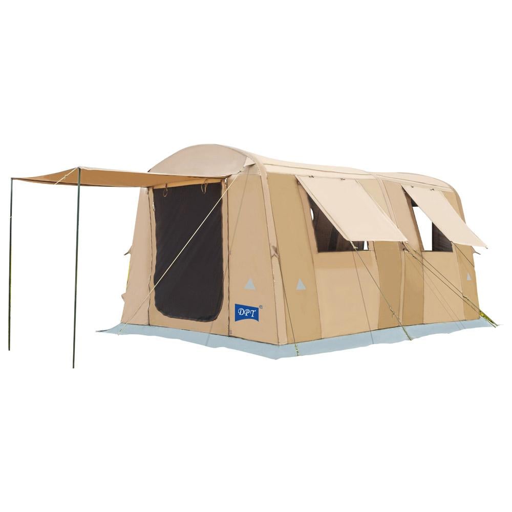 احصل على مأوى واسع ومريح لرحلات التخييم مع خيمة DPT الهوائية المصنوعة من قماش قطني كاكي غامق عالي الجودة، بسعة تتسع من 8 إلى 10 أشخاص، سهلة النفخ والتركيب مع مظلة باب واسعة.