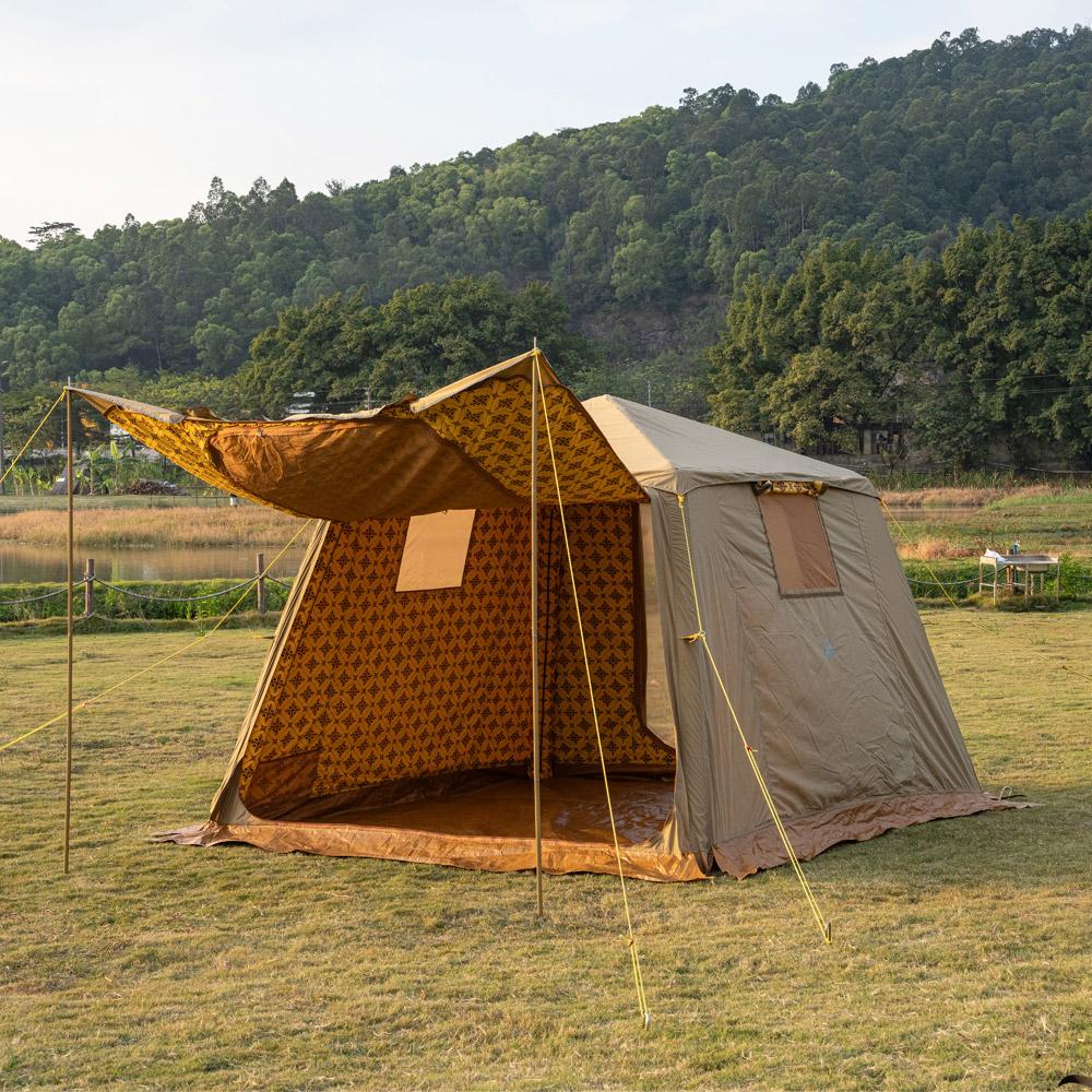 خيمة رحلات هوائية مصنوعة من قماش كانفاس جيشي مبطن بقماش قطني، تجمع بين القوة والمتانة والتصميم العملي لتوفير راحة وحماية مثالية أثناء التخييم والأنشطة الخارجية.