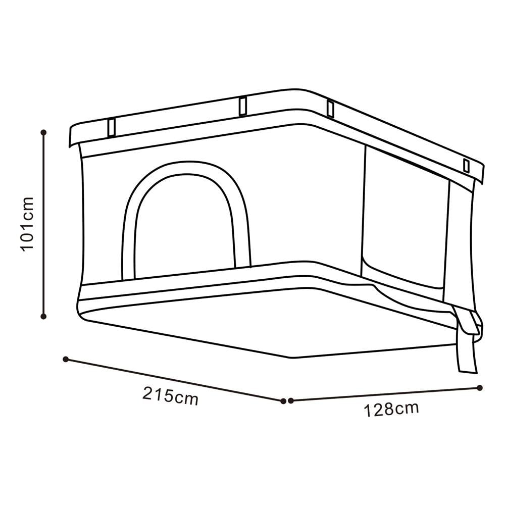 المقاس: الطول 215 سم × العرض 128 سم × الارتفاع 101 سم