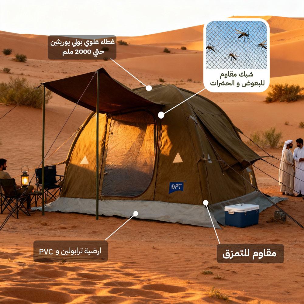 مثالية للرحلات البرية والتخييم والأنشطة الخارجية، توفر هذه الخيمة مأوى مريحًا وعمليًا يجمع بين الحماية والتهوية الجيدة، مع سهولة التركيب والنقل لتجربة تخييم ممتعة وآمنة.