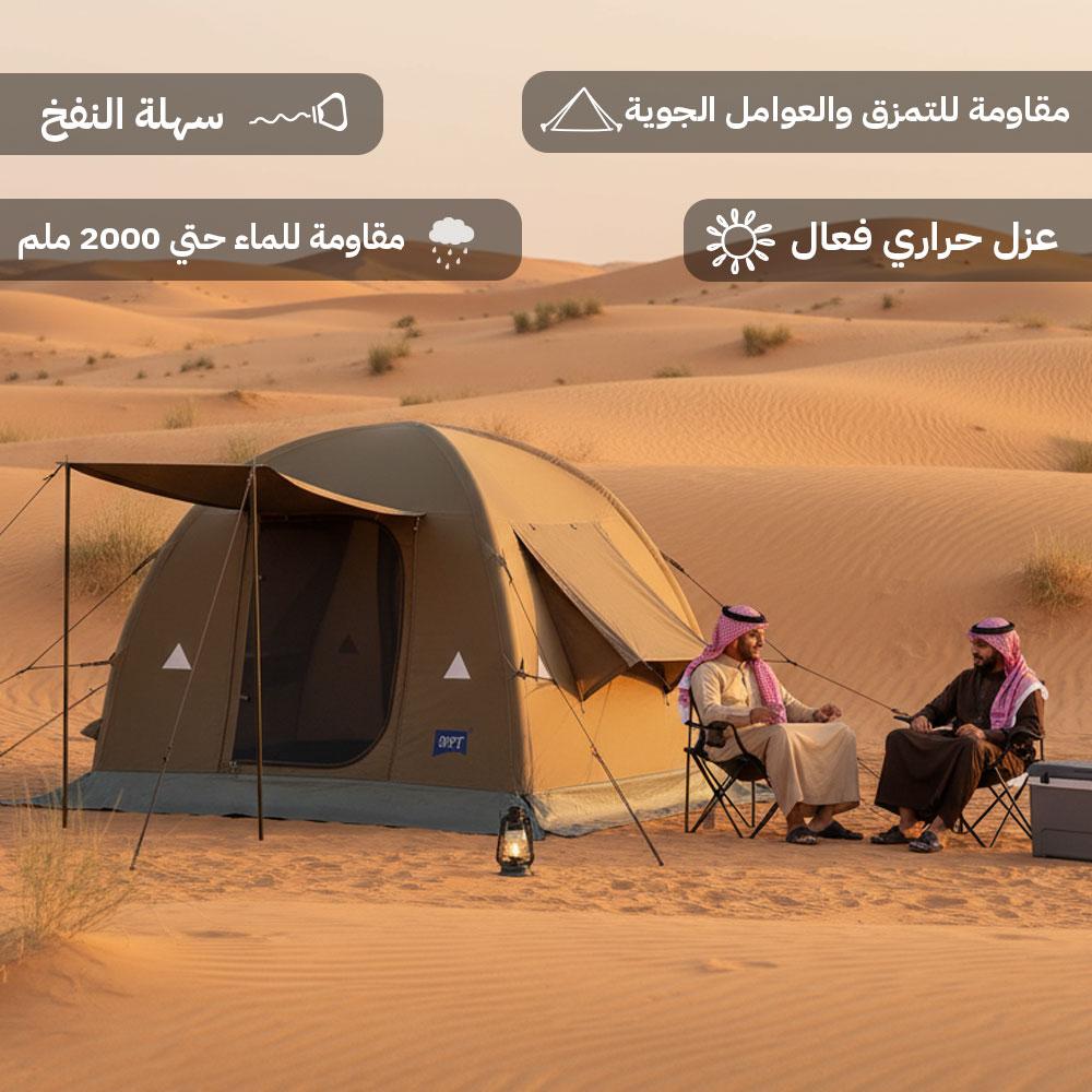 استمتع برحلات تخييم مريحة وسريعة التركيب مع خيمة هوائية DPT من قماش قطني كاكي غامق مزودة بمظلة باب ومنافخ يدوي، التي تجمع بين الجودة والمتانة والتصميم العملي.