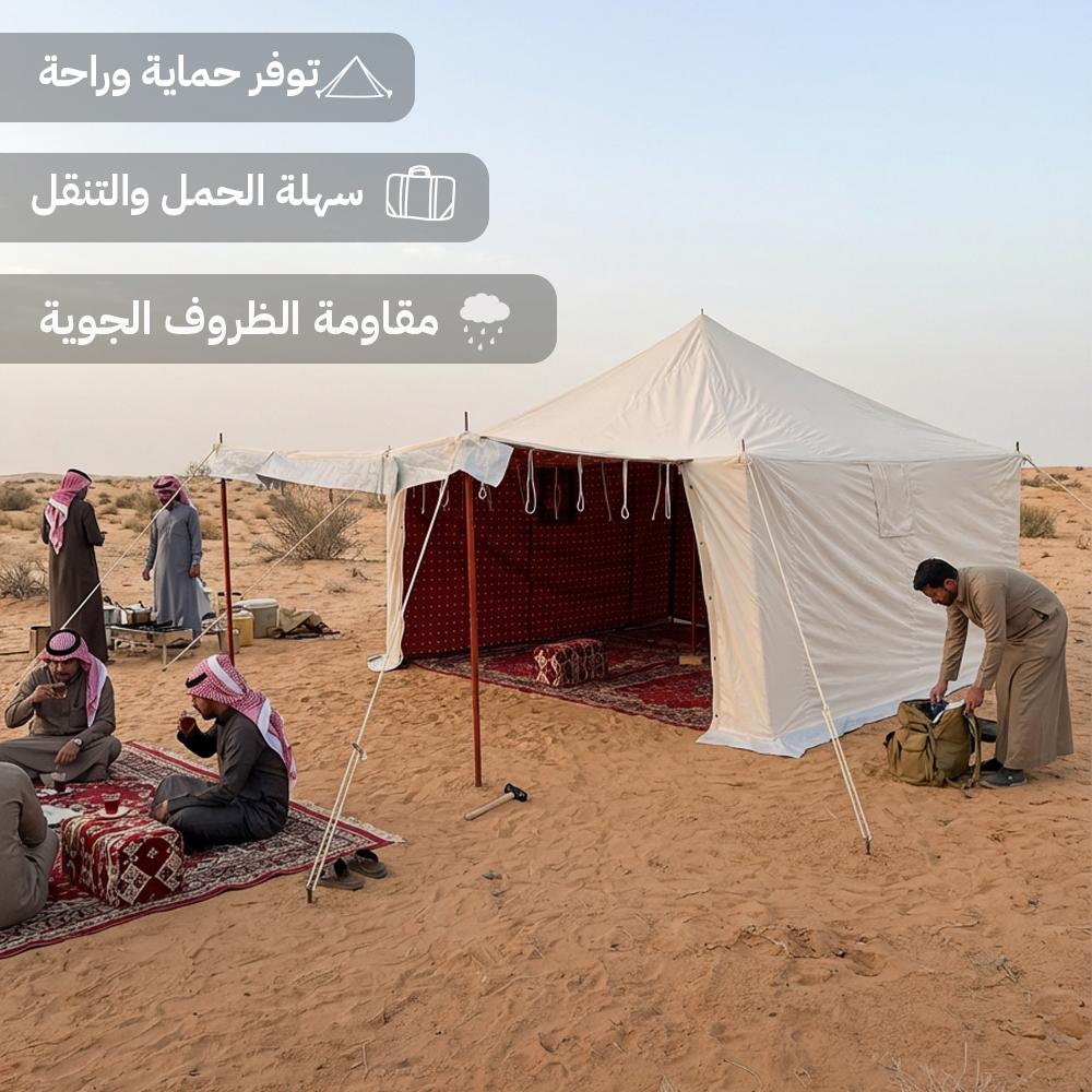 خيمة رحلات النزهة من السنيدي، خيمة قماش قطني أبيض باكستاني مبطنة، تجمع بين الجودة والمتانة لتوفير راحة وحماية مثالية أثناء التخييم والرحلات الخارجية.