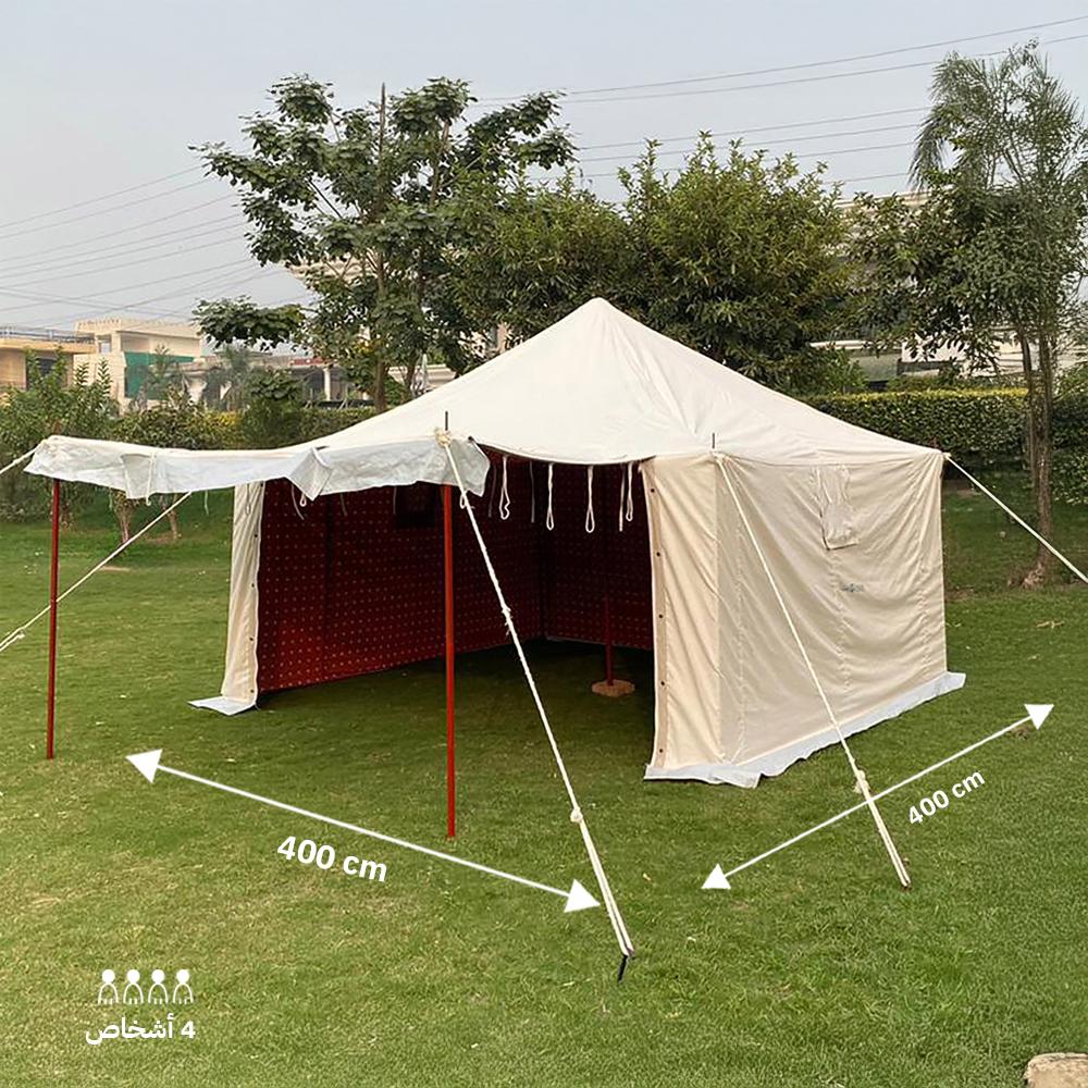 خيمة النزهة قطنية 4×4م، توفر راحة وحماية أثناء الرحلات،ضمان سنتان