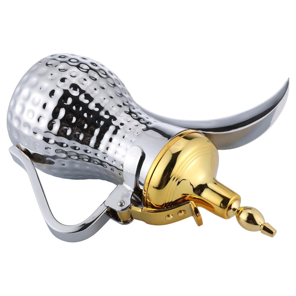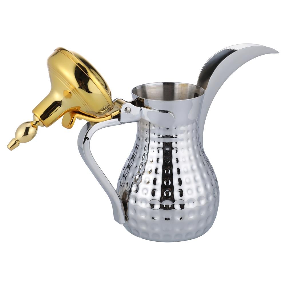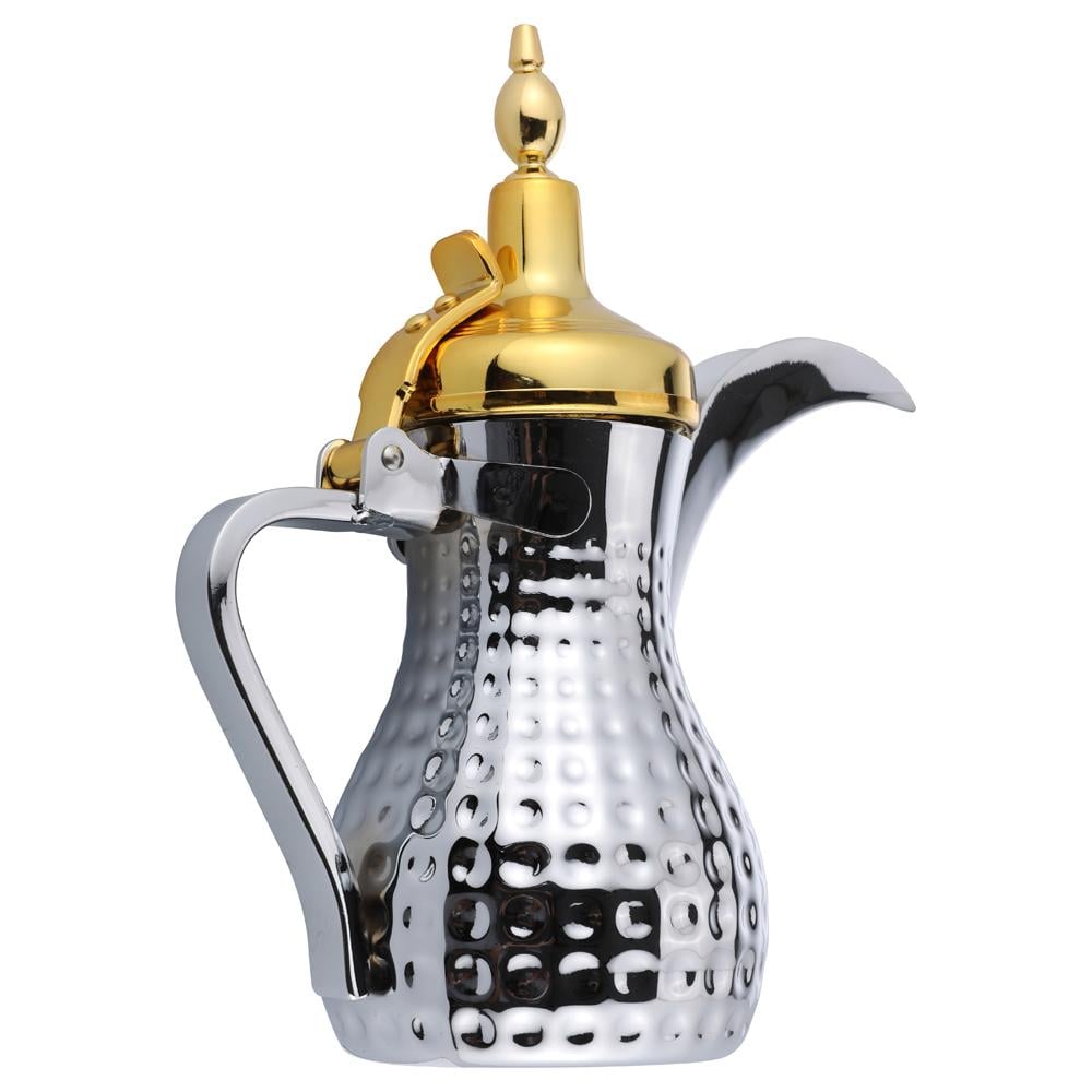 دلة قهوة رسلان ستانلس ستيل بنقشة حب الرمان وغطاء ذهبي