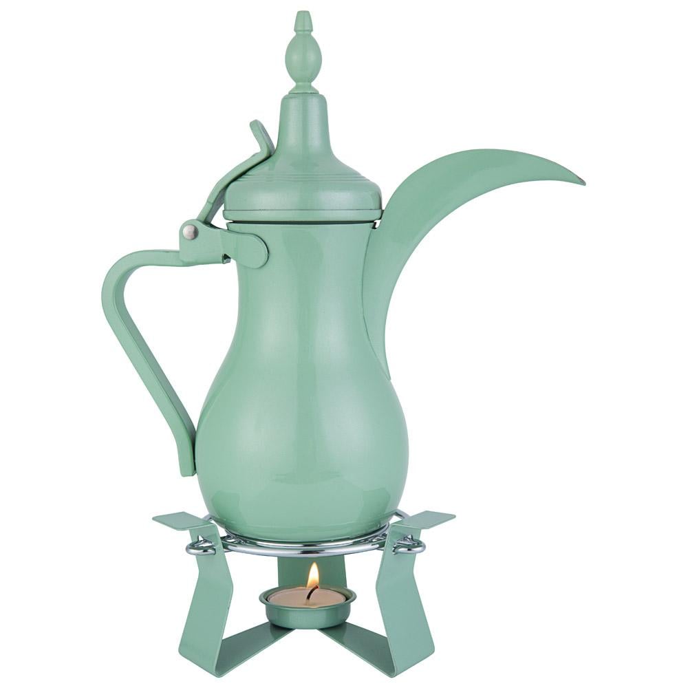 دلة قهوة رسلان النسائية مطلية أخضر مع قاعدة تسخين من السنيدي