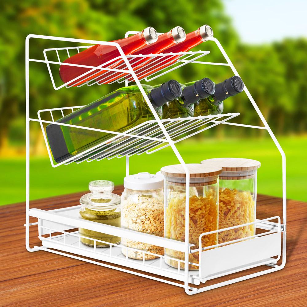رف تخزين أدوات مطبخ ثلاثي الأدوار من السنيدي، يعطيك حل عملي لتنظيم أدواتك بطريقة ذكية ويوفر عليك العناء والفوضى.