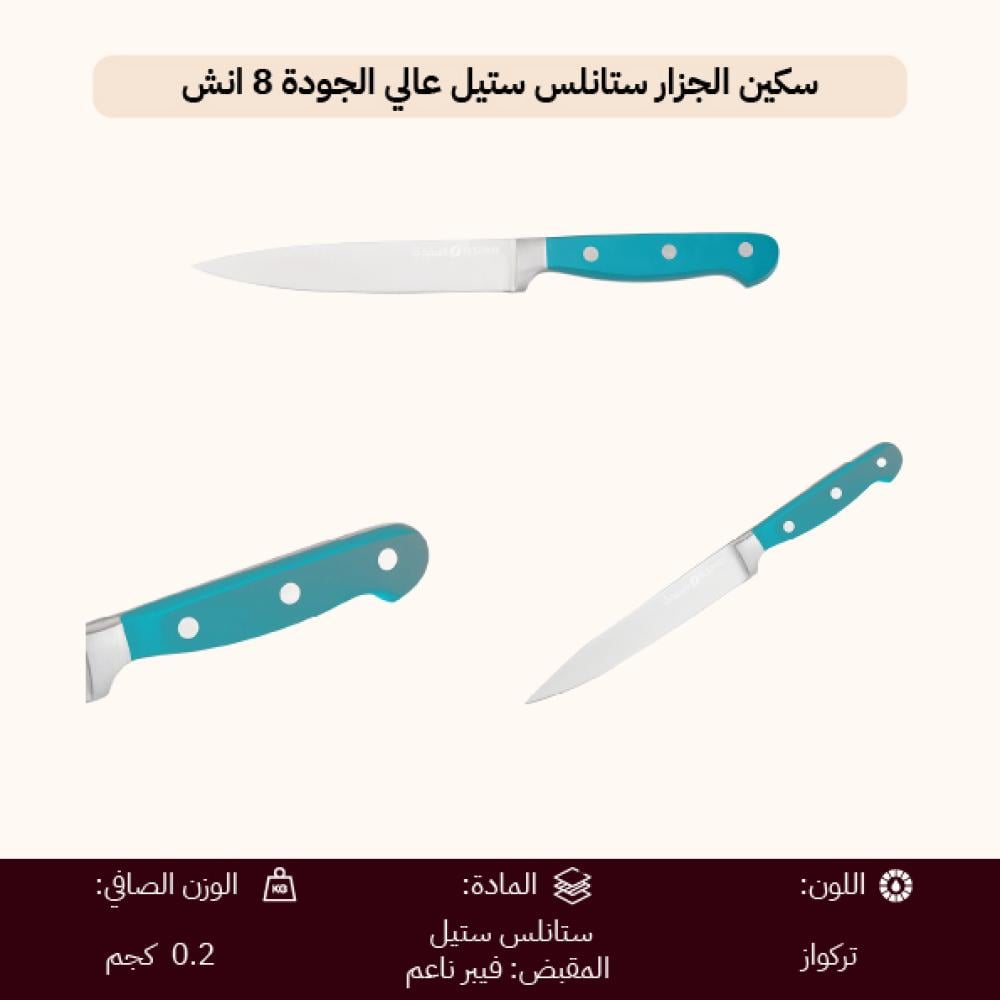 سكين الجزار الرفيع ستانلس ستيل بيد فيبر ناعم – تركواز