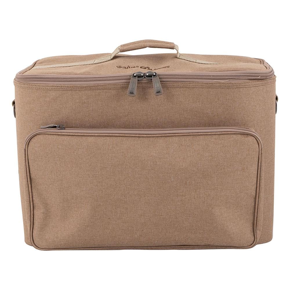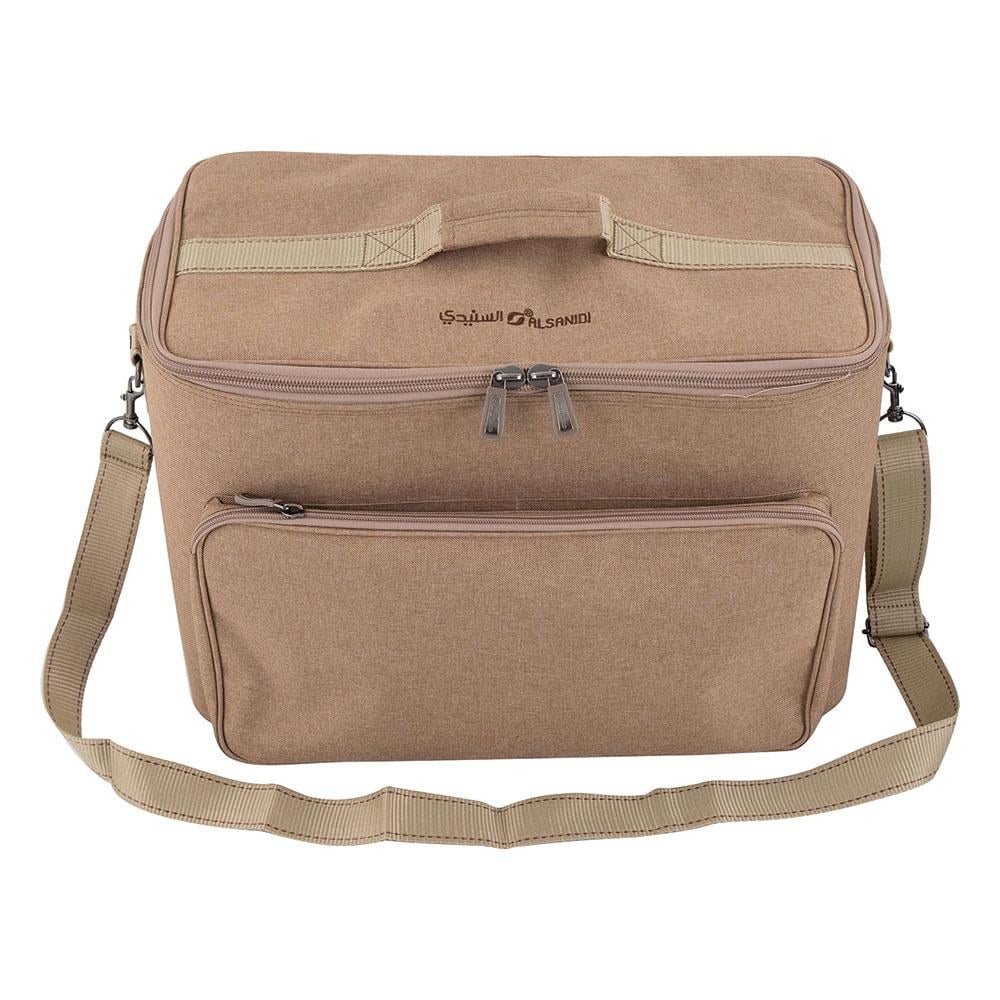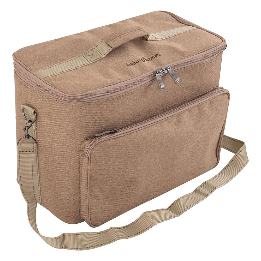 لضيافة راقية وتنظيم متكامل في رحلات البر، تأتيك شنطة الكويت الكبيرة من السنيدي بتصميم أنيق ولون خشبي جذاب، تناسب احتياجاتك وترافقك في كل مغامرة.