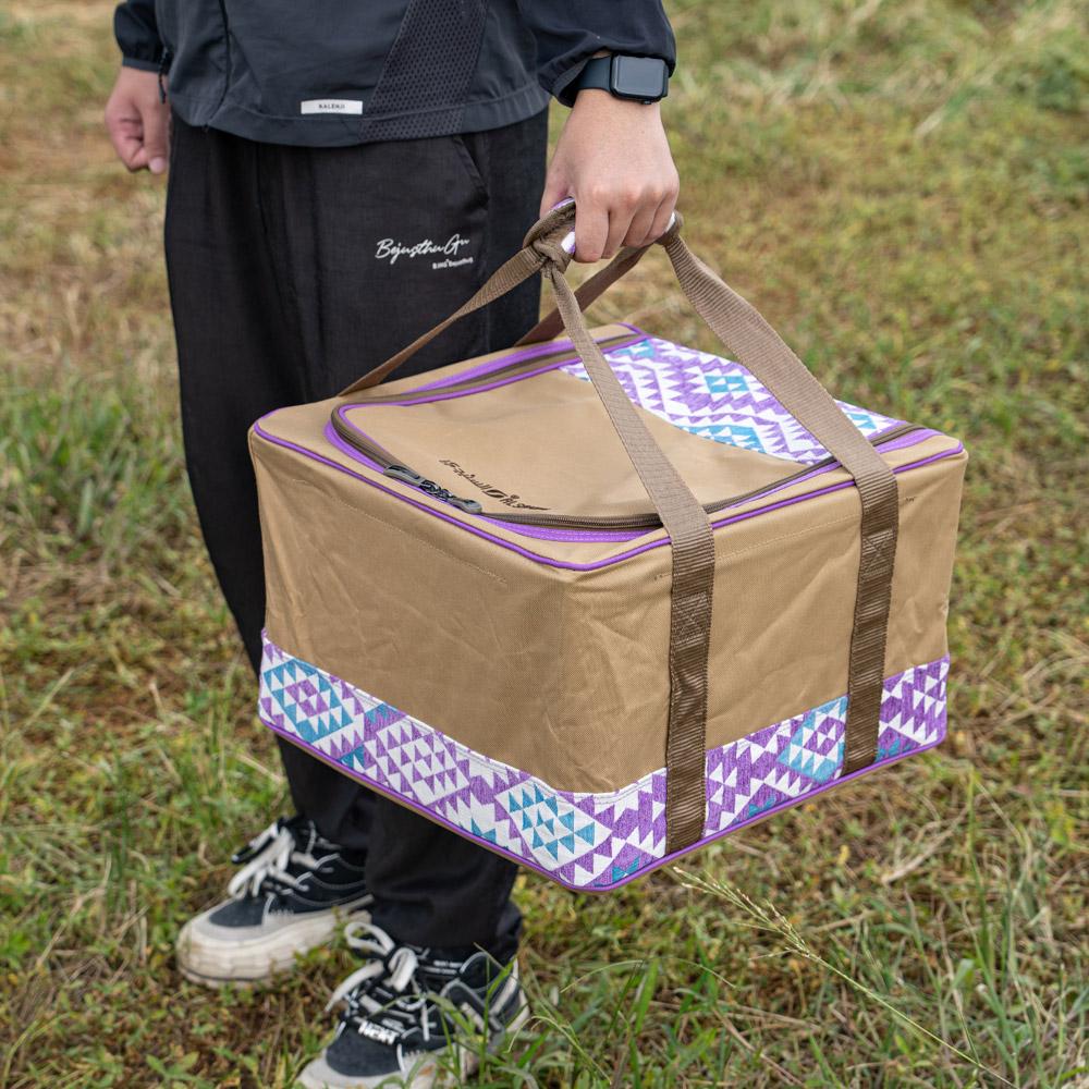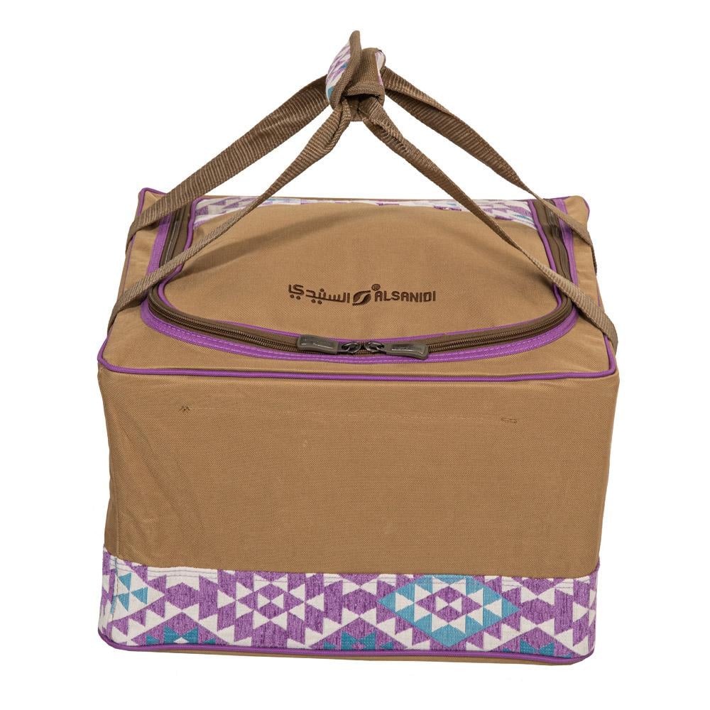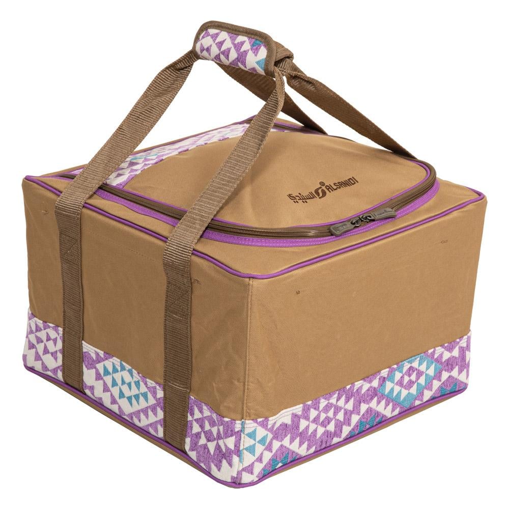 ✨ شنطة شاي وقهوة "على خطى العرب" من السنيدي – نقش خزامي فخم في تصميم عملي للرحلات البرية!