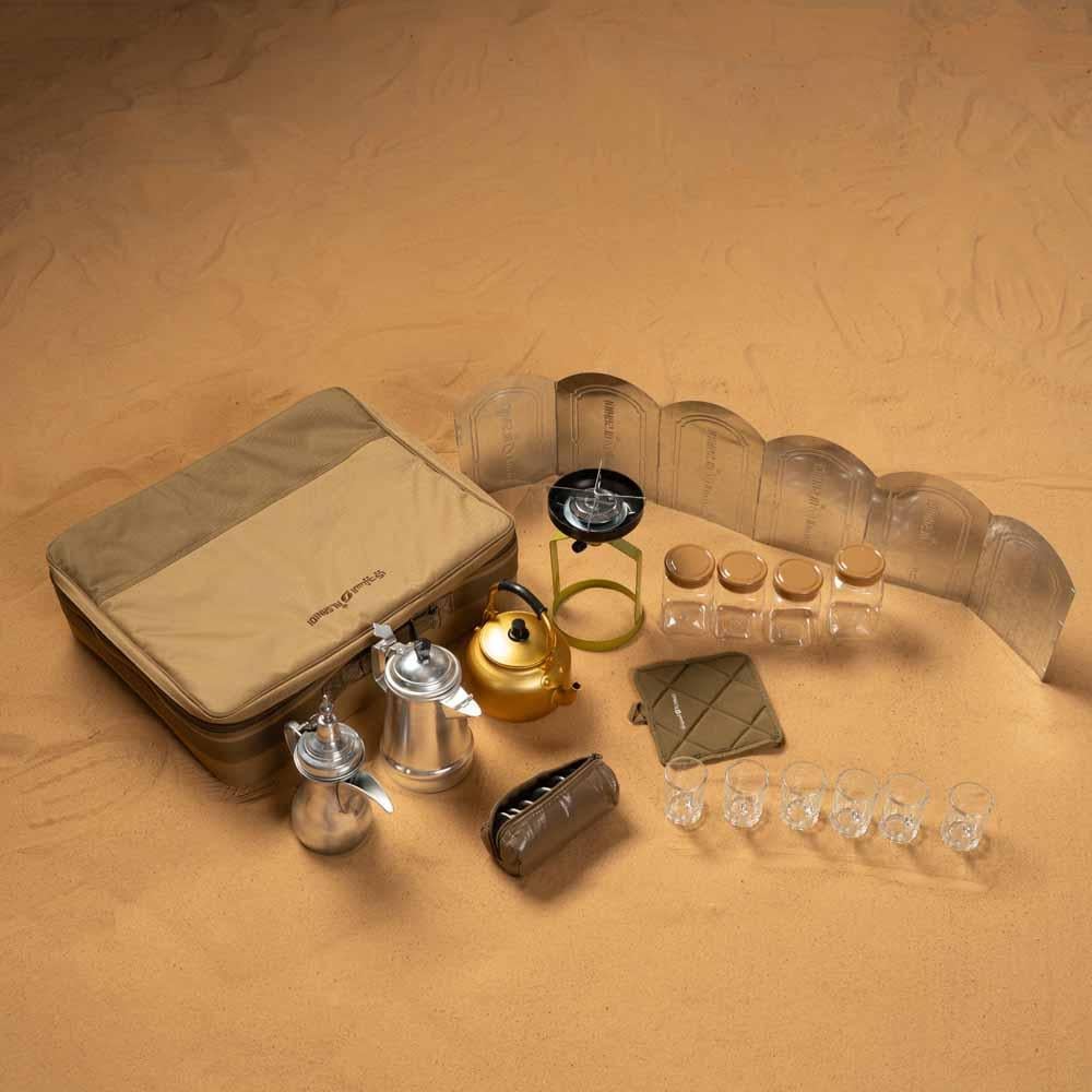 تصميم شامل يجمع جميع أدوات الشاي والقهوة في شنطة واحدة