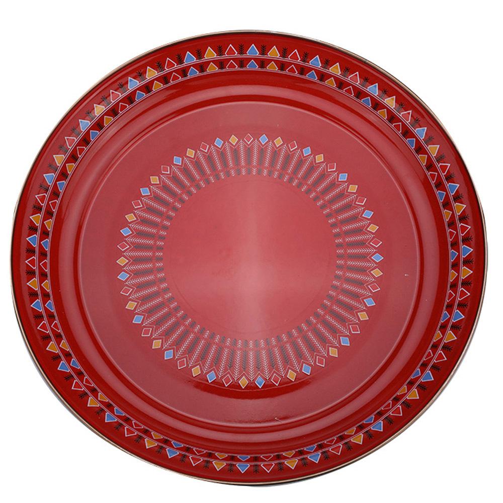 ✨ صحن السنيدي الغضار المزين بنقشة القط العسيري التراثية، مصنوع من معدن مطلي بطبقة المينا عالية الجودة، يجمع بين التراث السعودي الأصيل والمتانة، مثالي للاستخدام اليومي وفي الرحلات البرية.