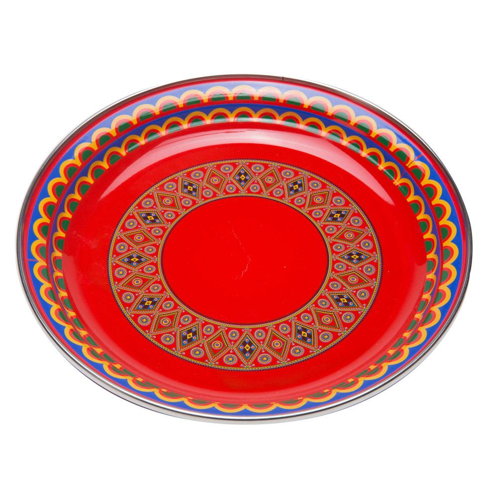 ✨ صحن السنيدي المزخرف بنقوش نجدية تقليدية، مصنوع من معدن مطلي بطبقة المينا المتينة، يجمع بين التصميم الراقي والمتانة الفائقة، مناسب للاستخدام اليومي وفي الرحلات البرية.