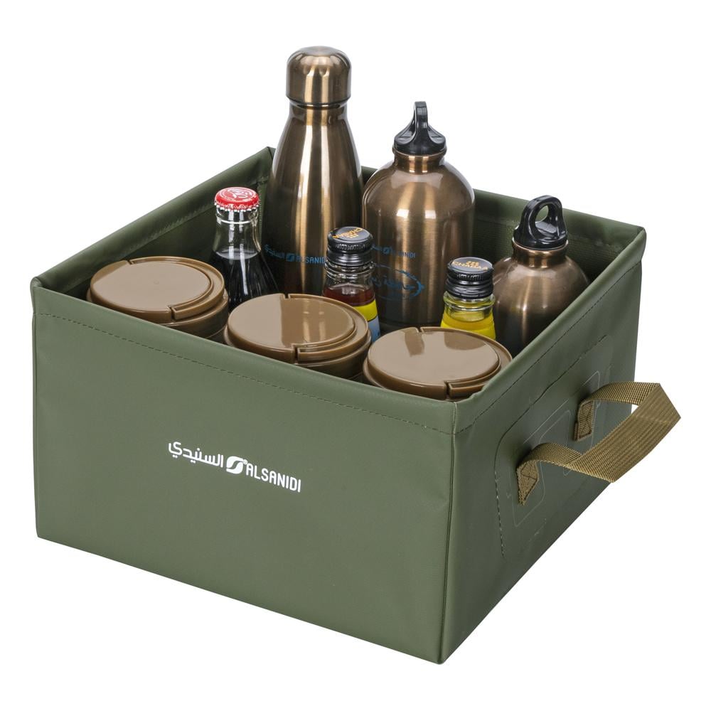 صندوق تخزين متعدد الاستخدام من السنيدي، مصنوع من قماش PVC جيشي مقاوم للماء مع تصميم قابل للطي، يوفر حلاً عمليًا وفعالًا لتخزين وحمل الأغراض في المنزل والرحلات الخارجية.