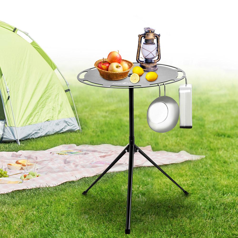 حل عملي وخفيف الوزن لعشاق الرحلات والتخييم! طاولة دائرية بارتفاع قابل للتعديل لتتناسب مع جميع احتياجاتك في الهواء الطلق.